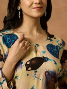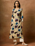 Experience the ease and elegance of this Women Plus kurta. With a round neckline and three-fourth sleeves, this kurta is crafted from printed viscose rayon for ultimate comfort and breathability, perfect for sweltering summer days.