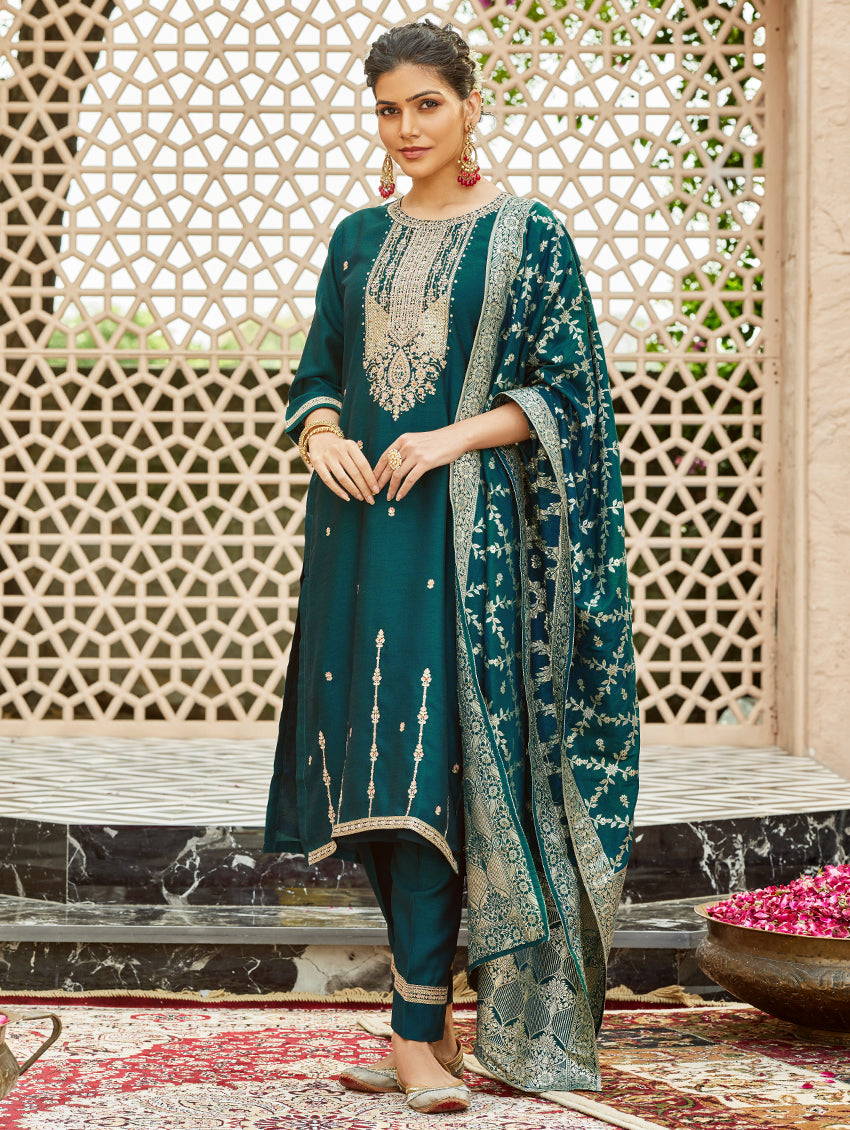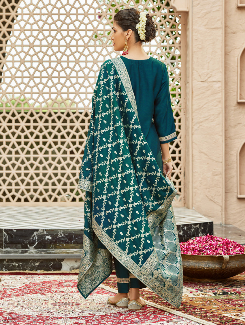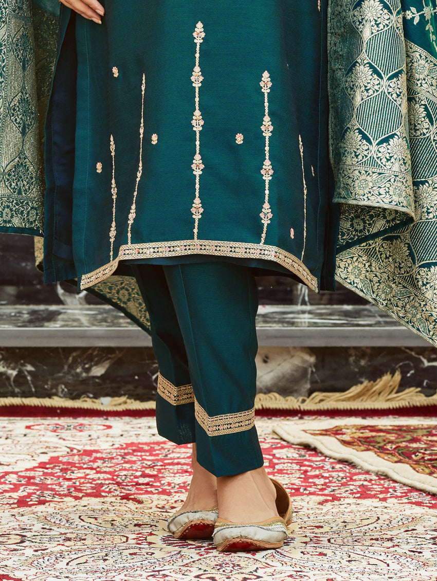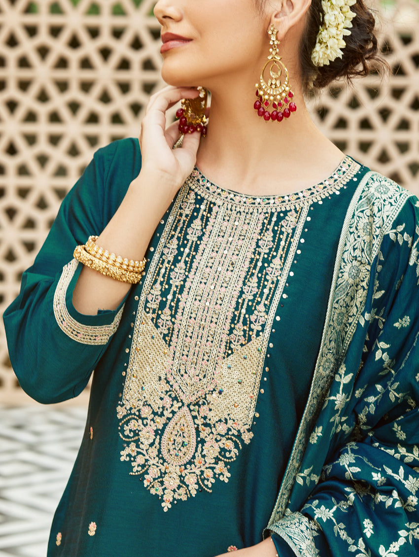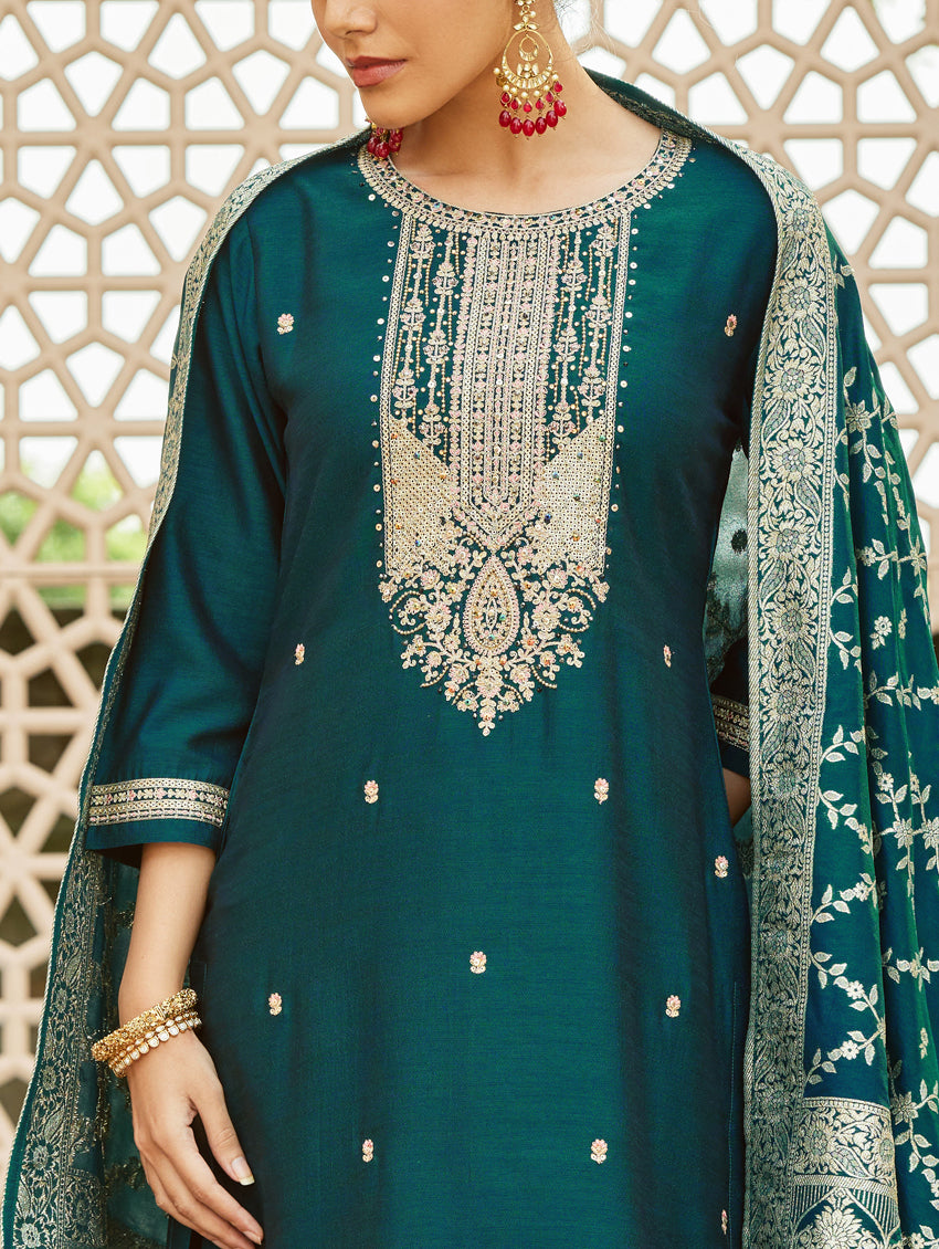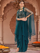 Dark Teal Hand Embroidered Georgette Dress 3967