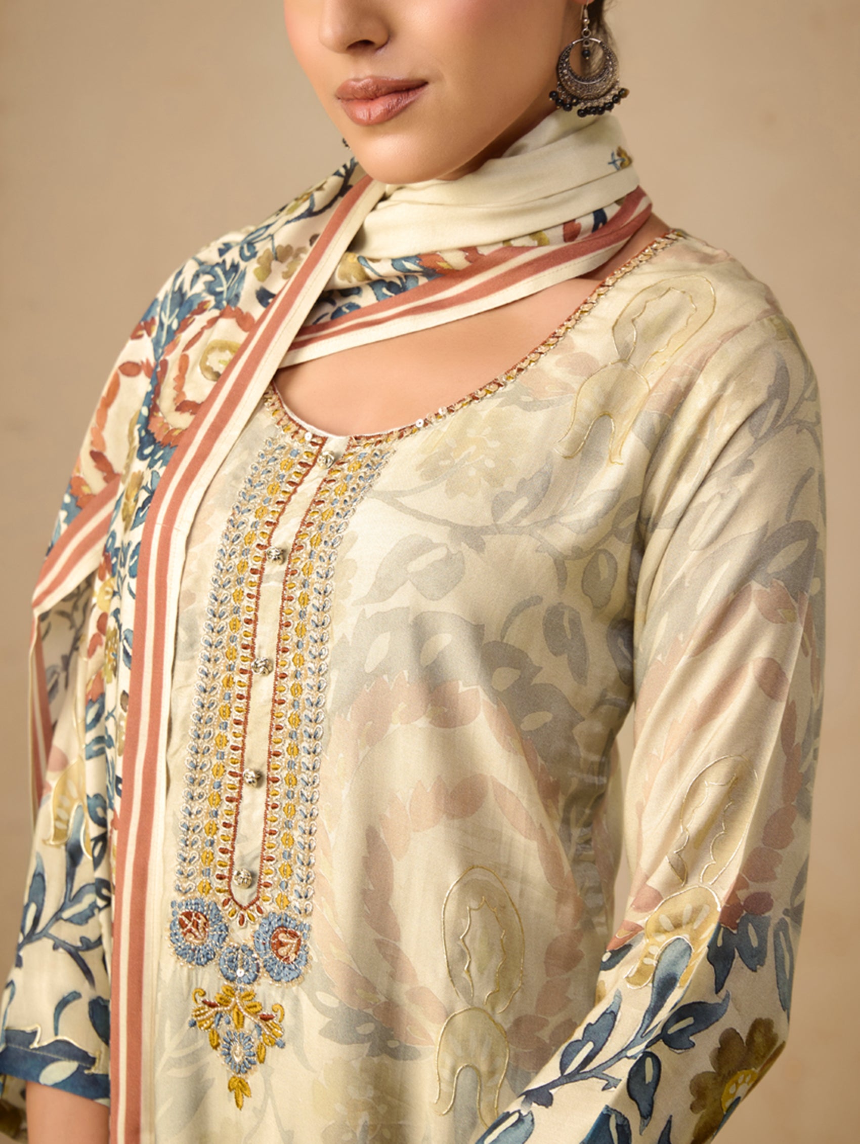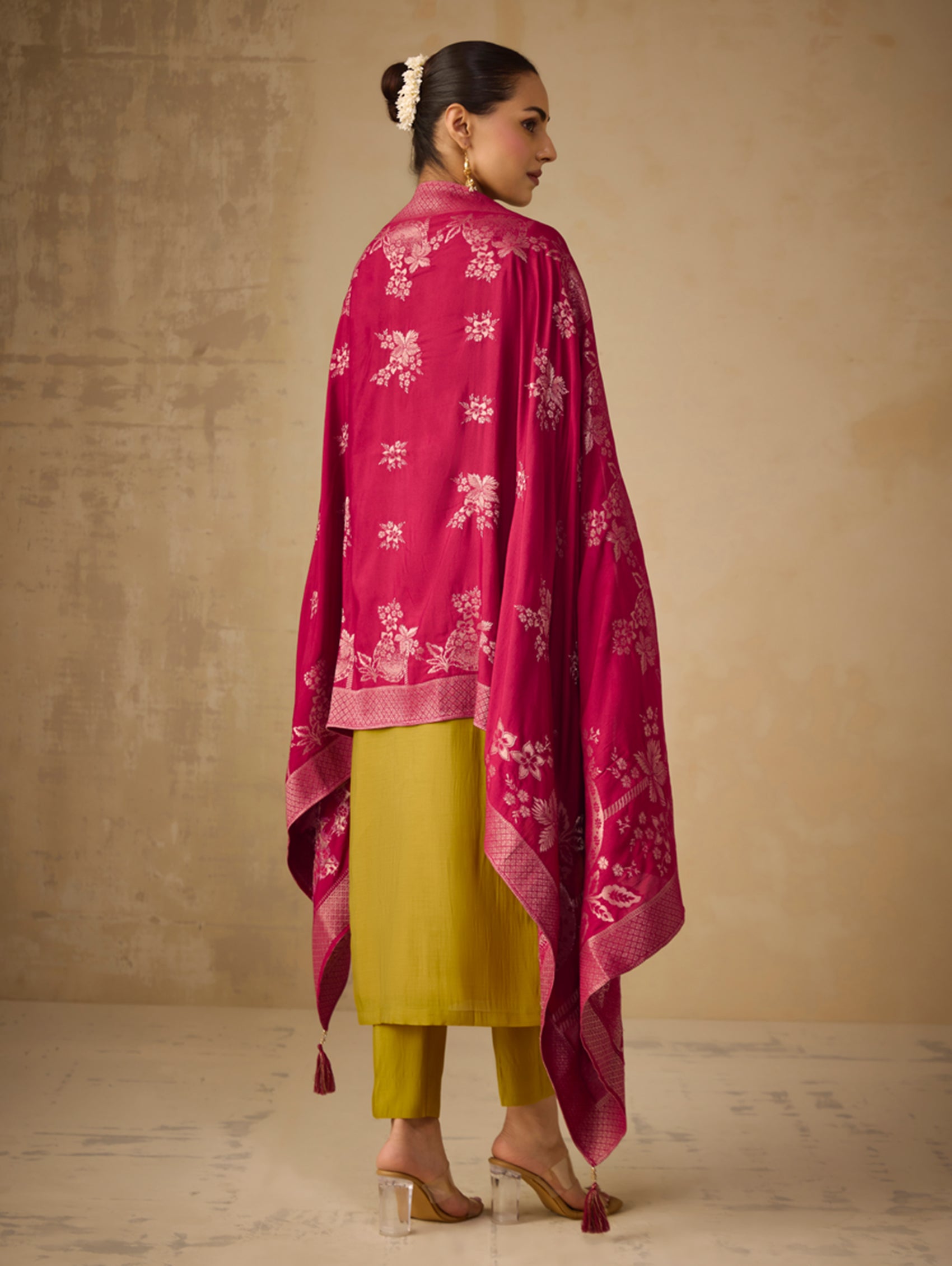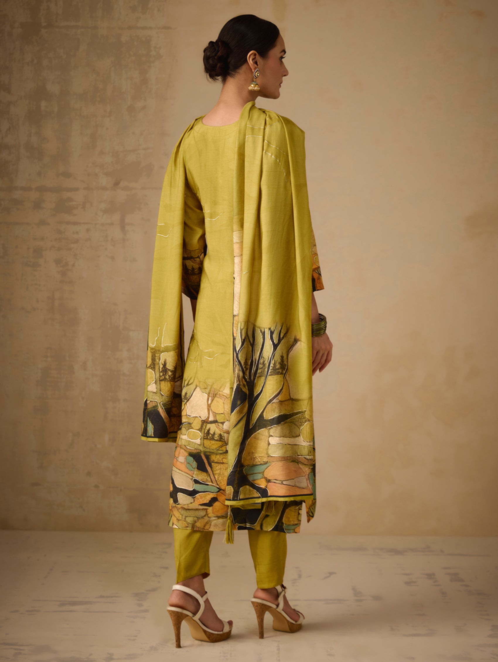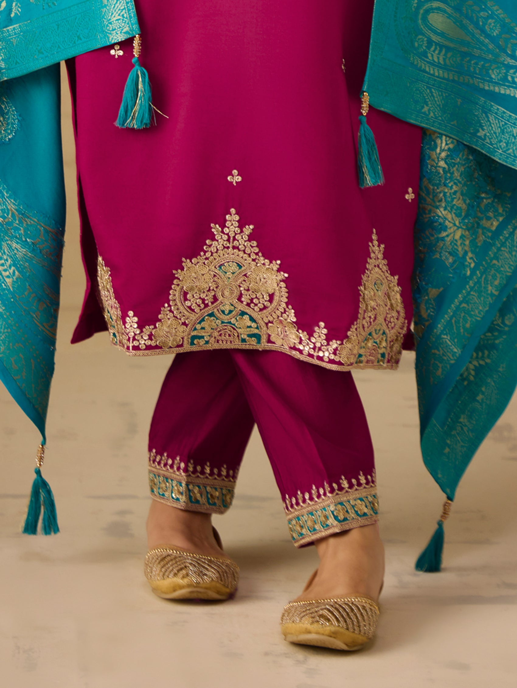 • Digitally Printed kurta with pants and digitally printed shimmer silk dupatta