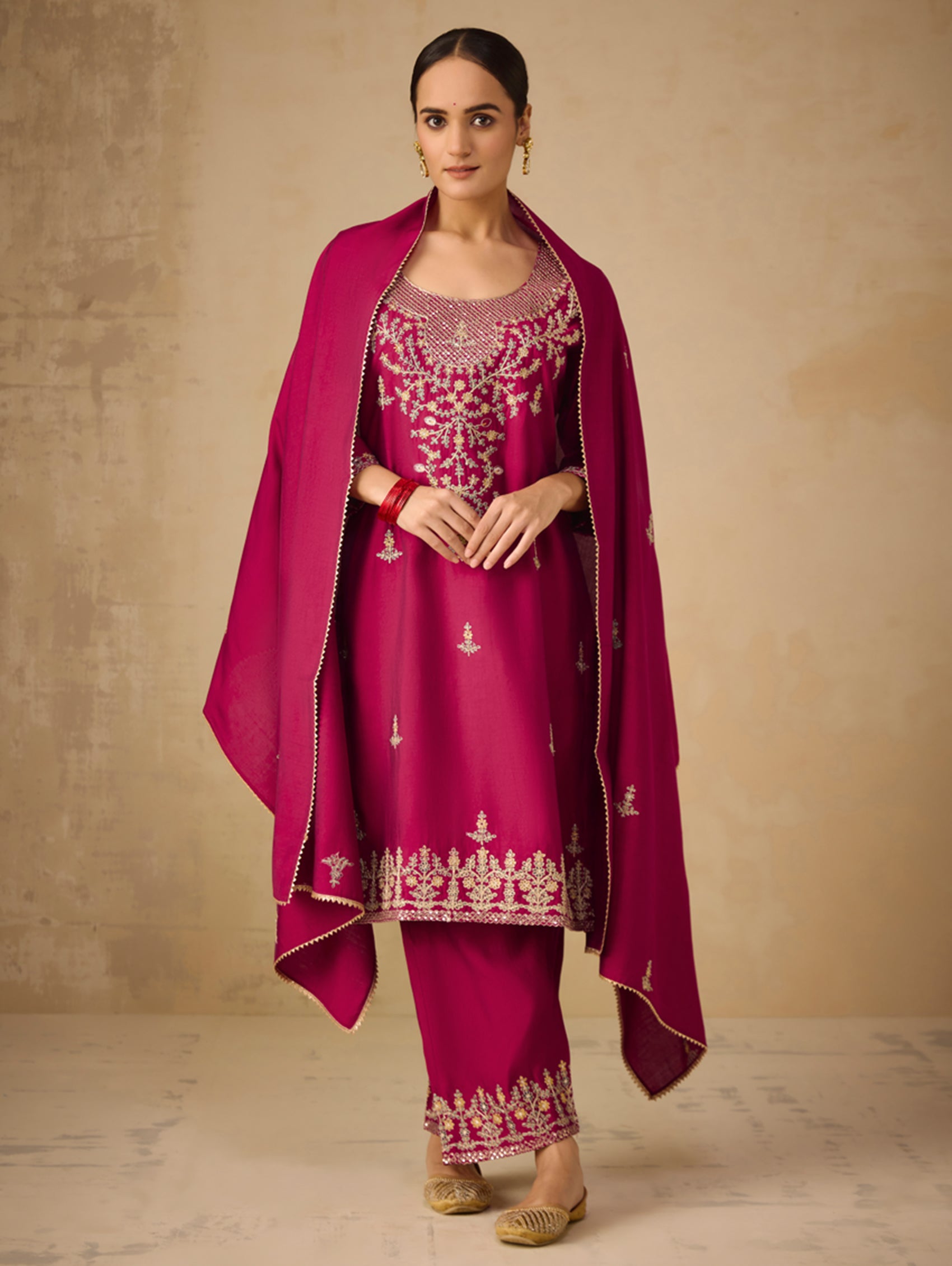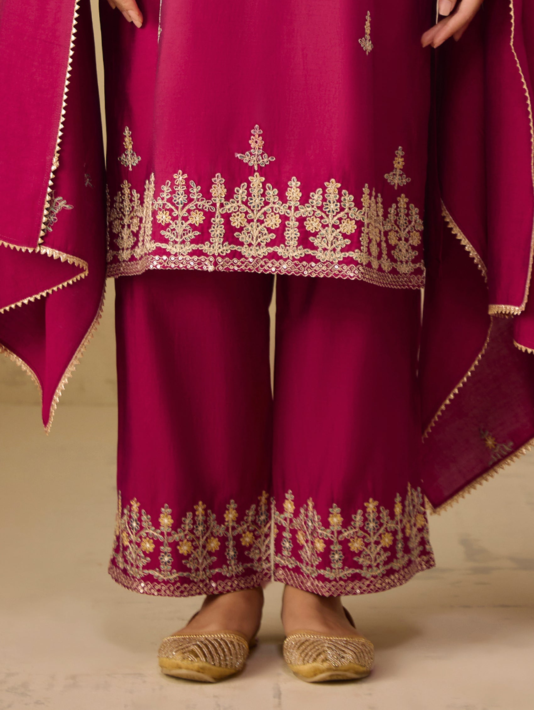 • Short Kurti with mandarin collar, full sleeves, and side slits open