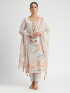 Embroidered Digitally Printed Cotton Linen Suit Set with Dupatta