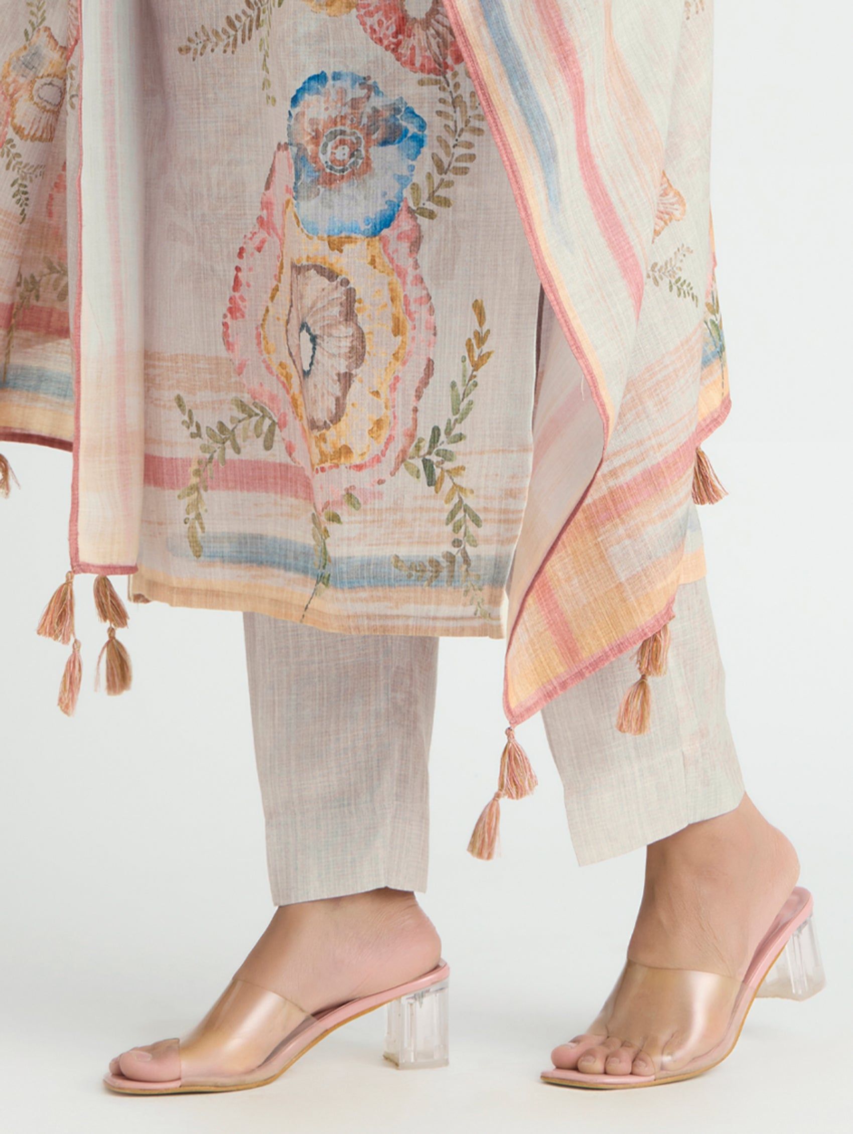 • Kurta with pants and digitally printed cotton linen dupatta
