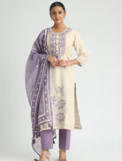 Rose Quartz Embroidered Digitally Printed Jute-Linen Suit Set with Dupatta
