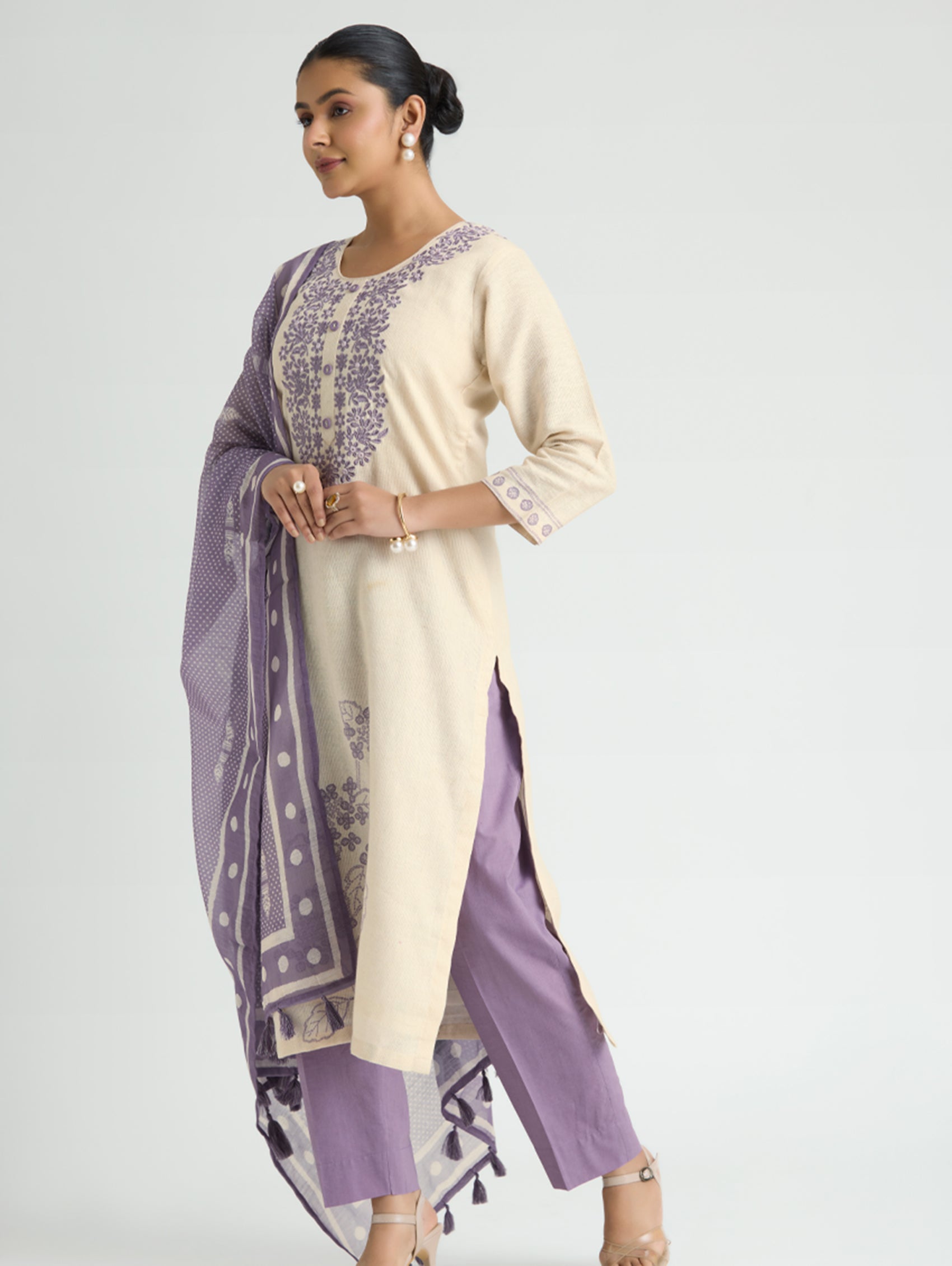 • Kurta with pants and digitally printed cotton linen dupatta