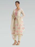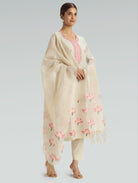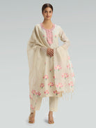 Pearl Cream Embroidered Jamdani Cotton Silk Suit Set with Dupatta