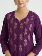 Grape Purple Embroidered Zari-Jamdani Pure Cotton Suit Set with Dupatta