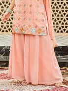 A straight-fit suit set from our latest festive collection. The set combines a kurta and sharara in Georgette and a dupatta. Kurta comes accentuated with sequence work.
