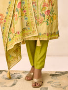• Digitally Printed kurta with pants and digitally printed shimmer silk dupatta