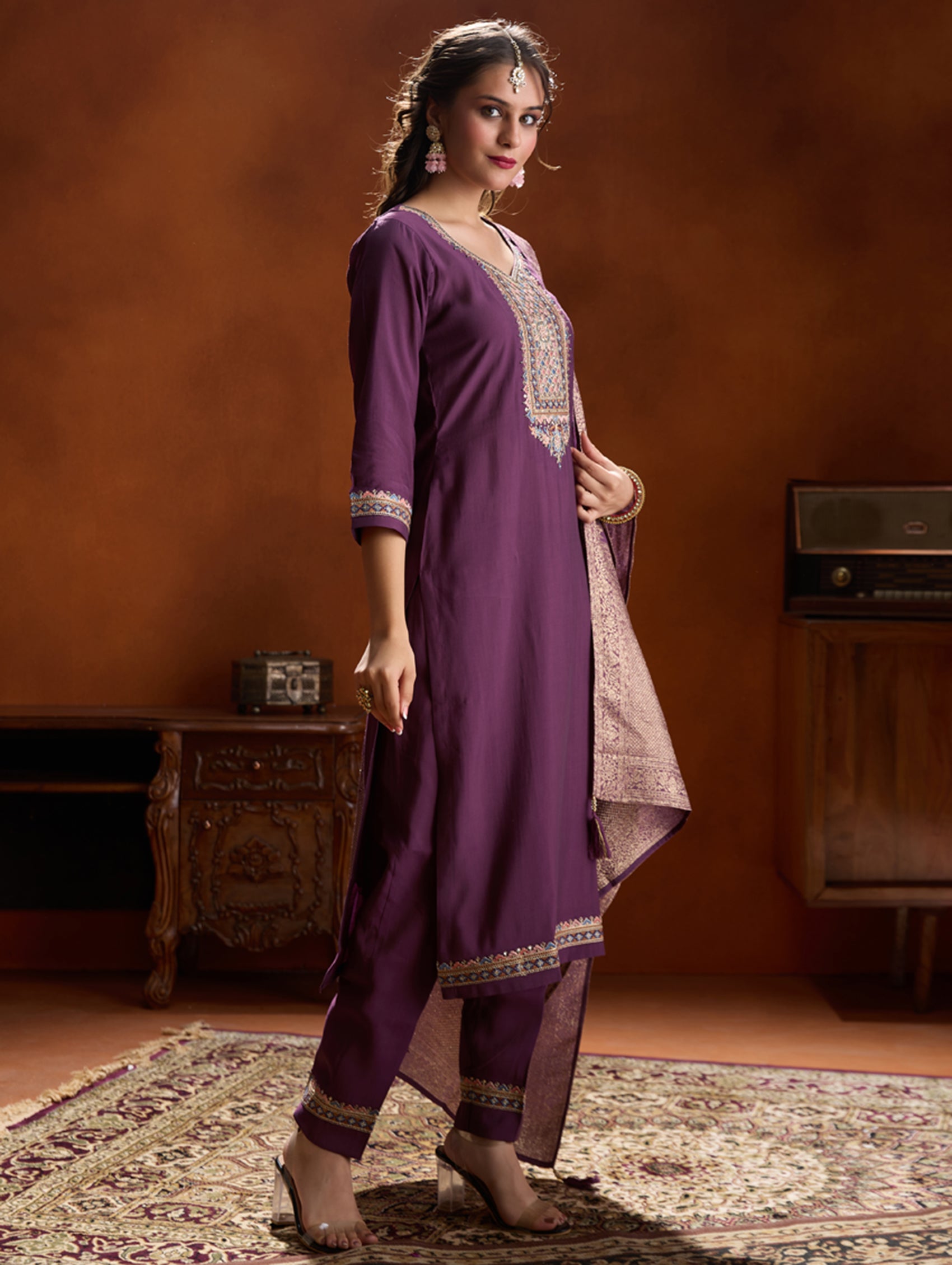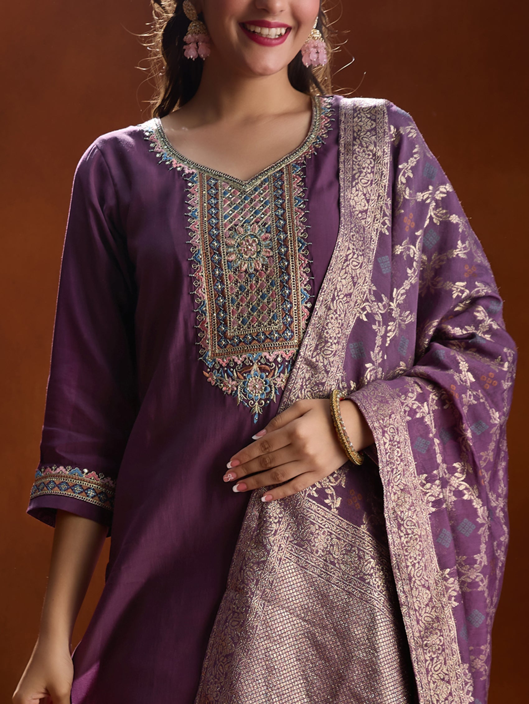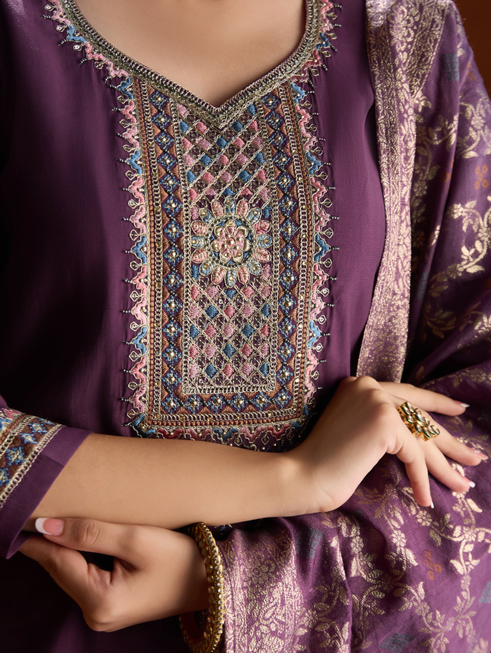Hand-Embroidered Pure Muslin Silk Suit Set 4060