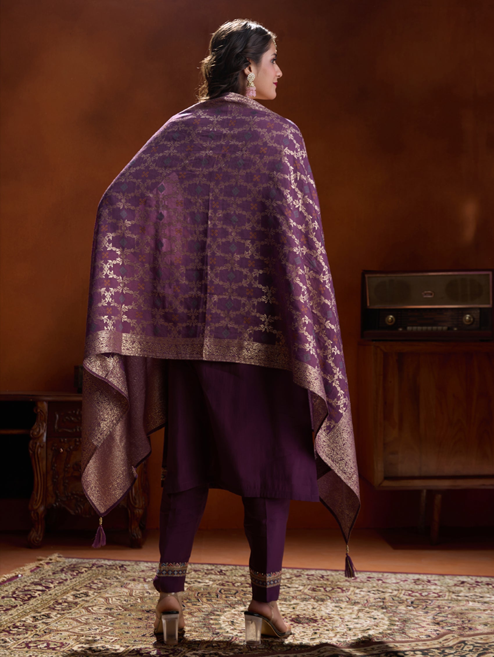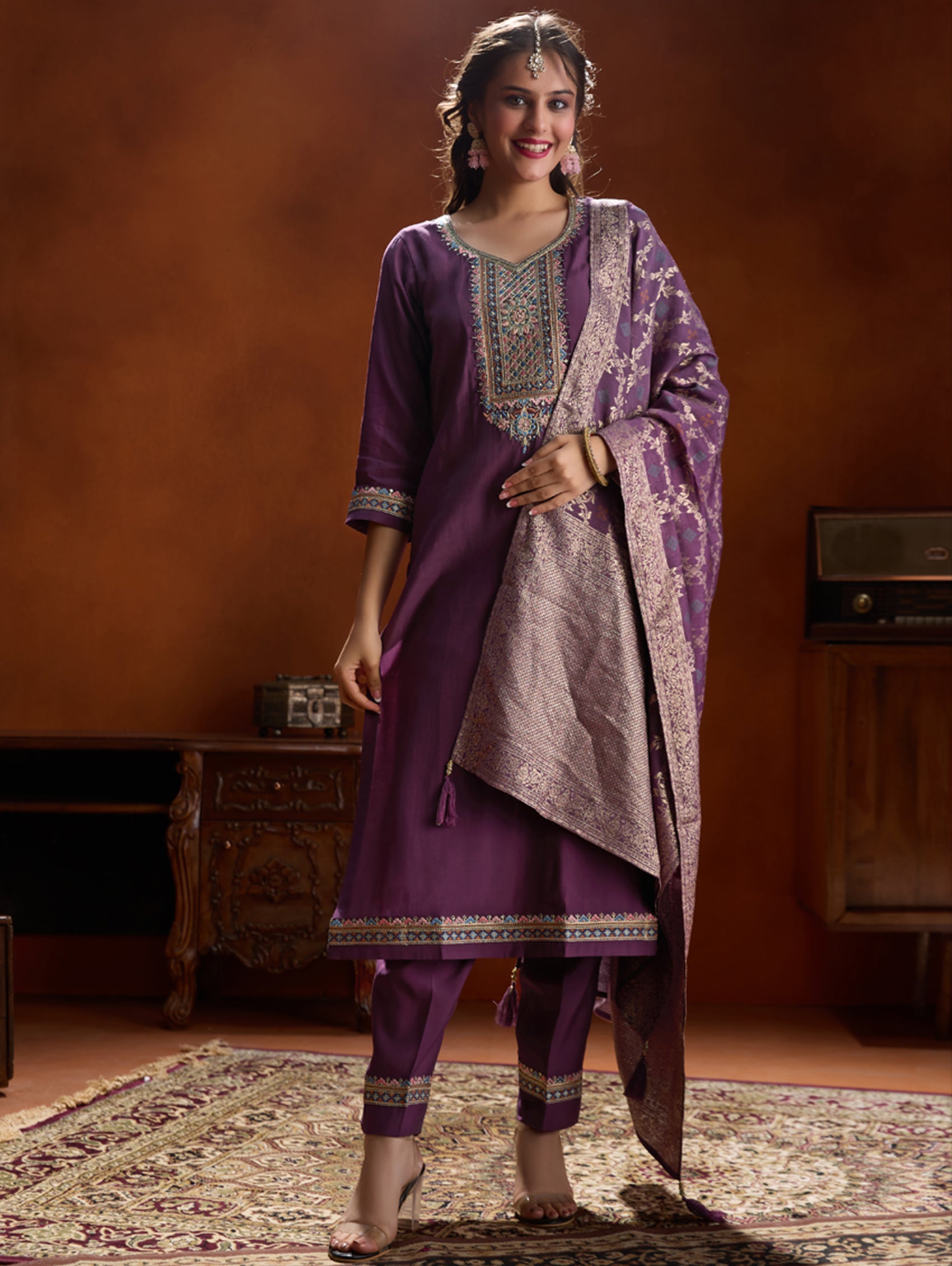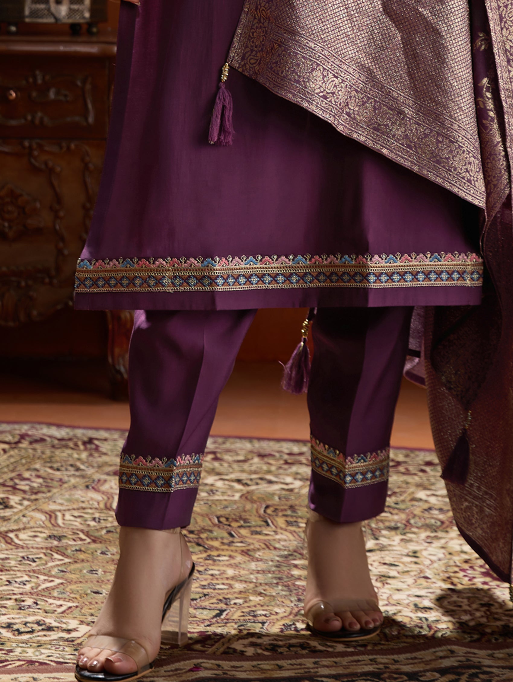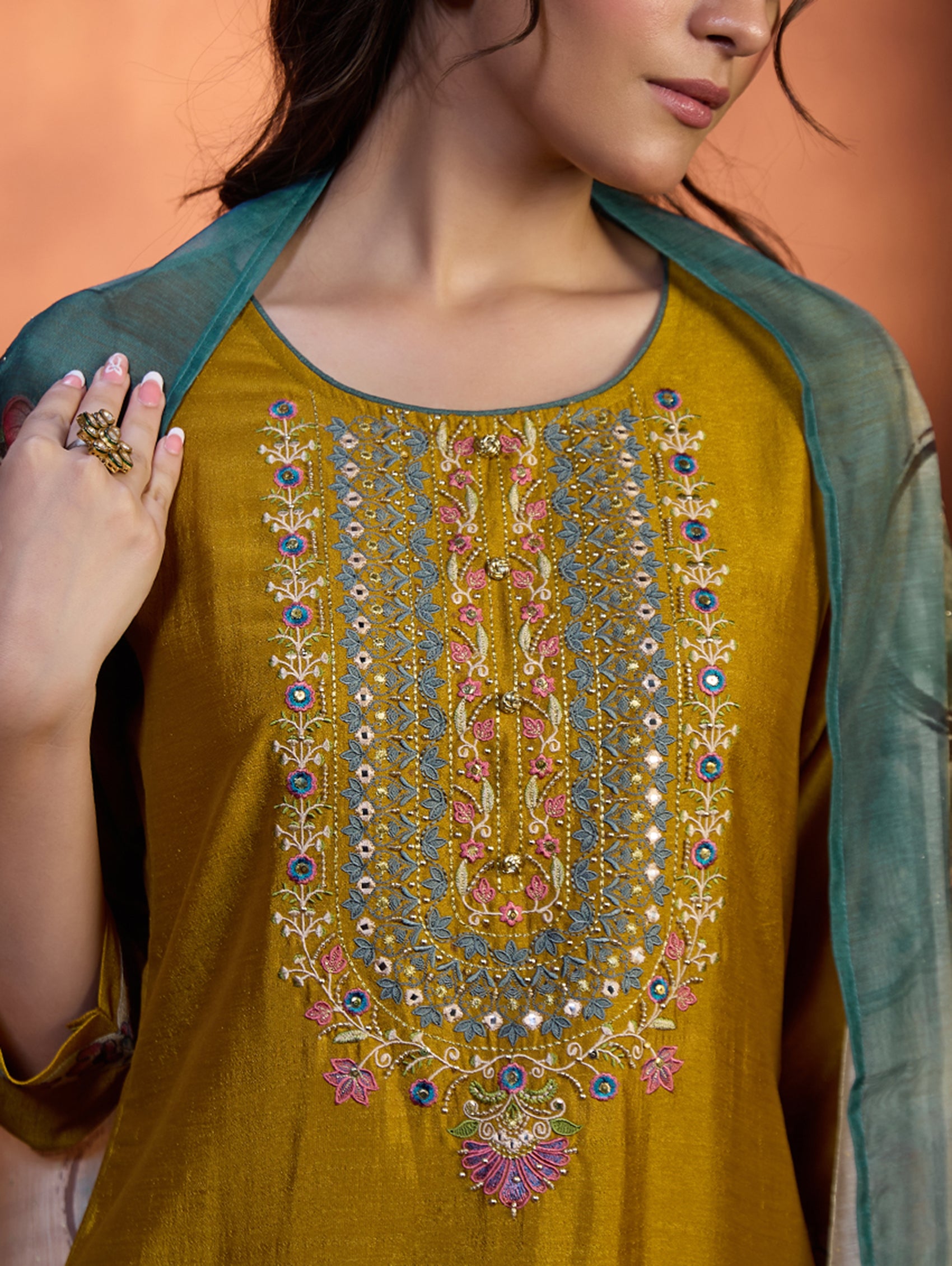 Hand-Embroidered Pure Muslin Silk Suit Set 4060