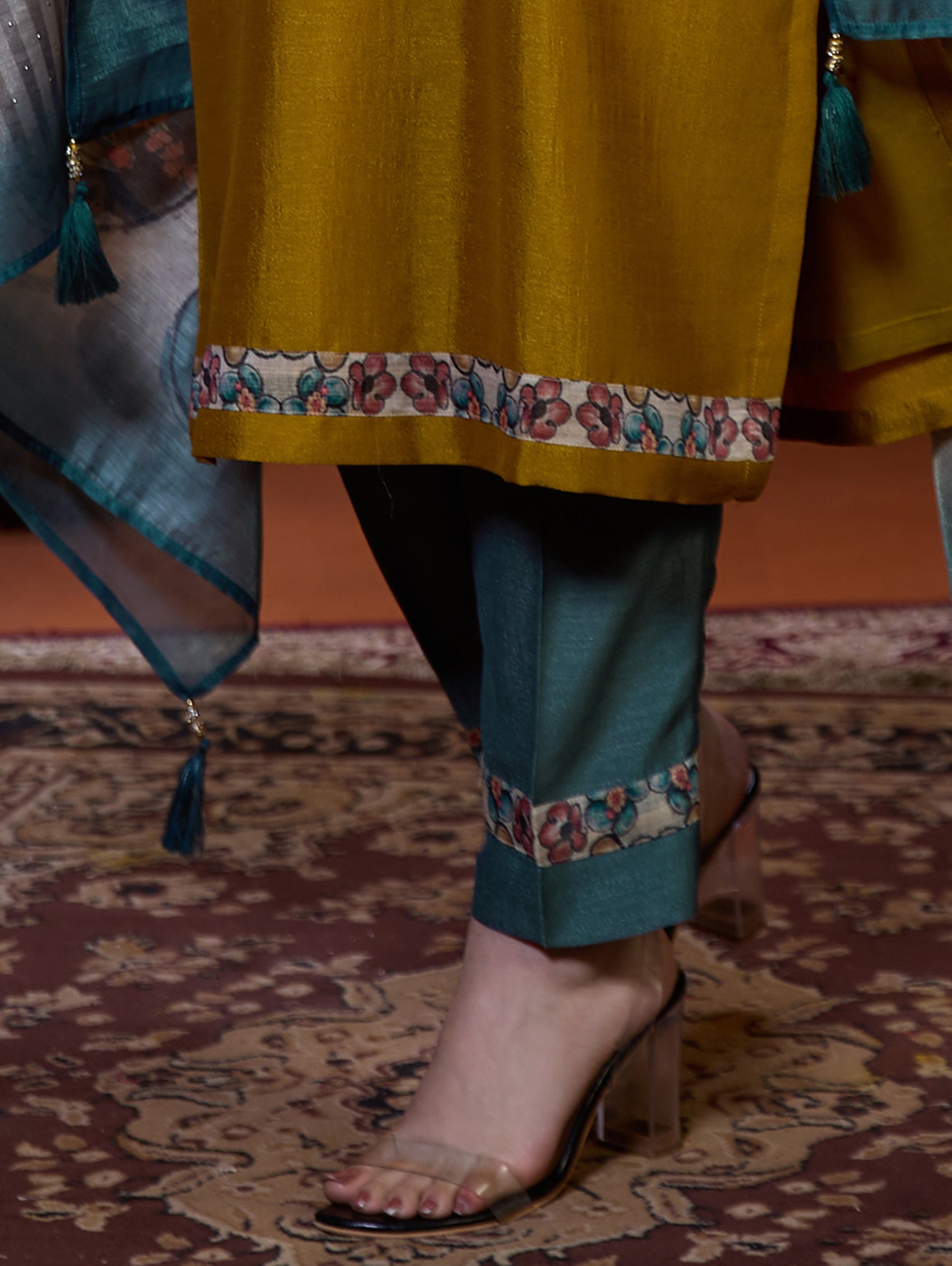 • Kurta with pants and digitally printed viscose muslin dupatta