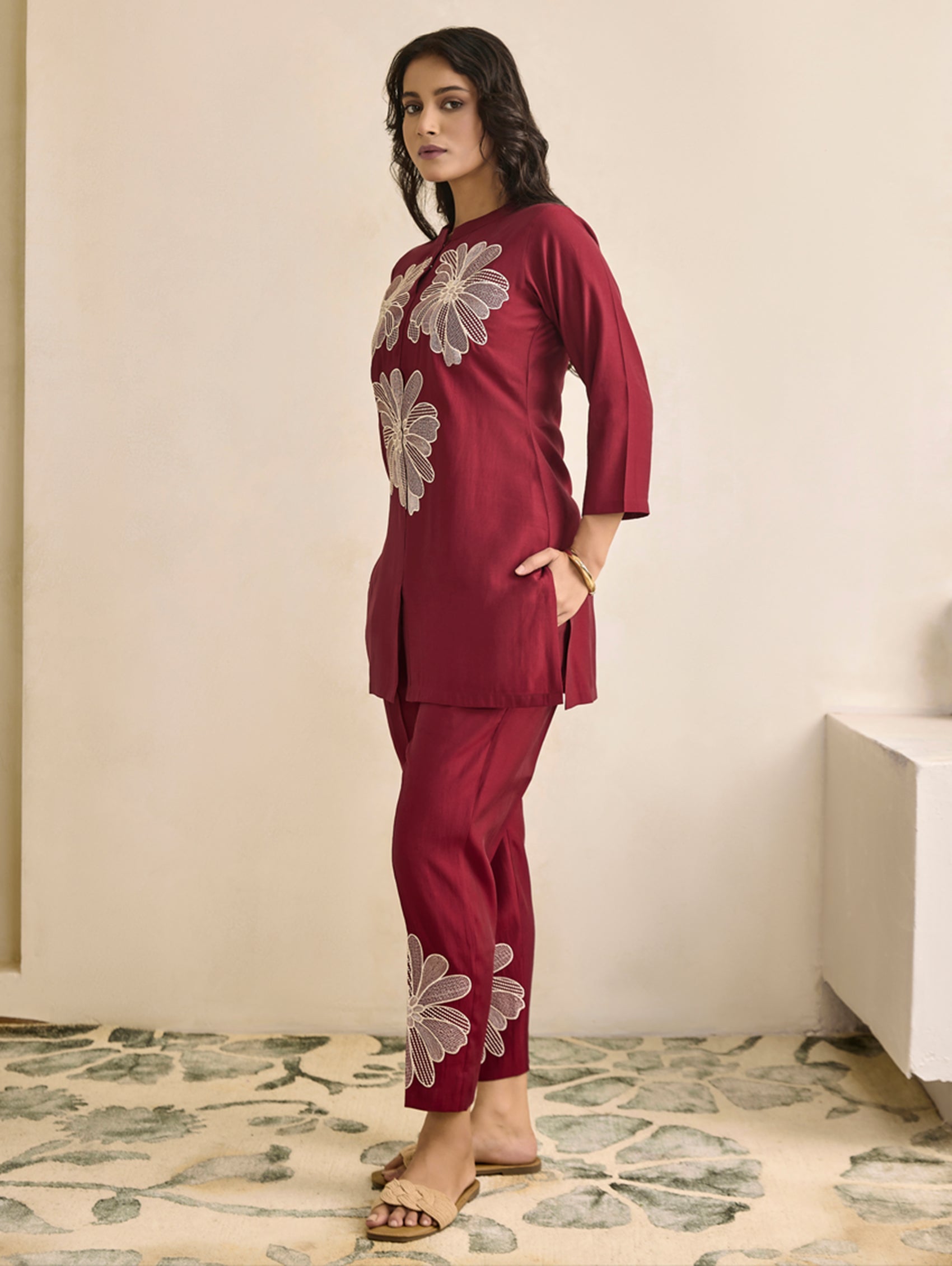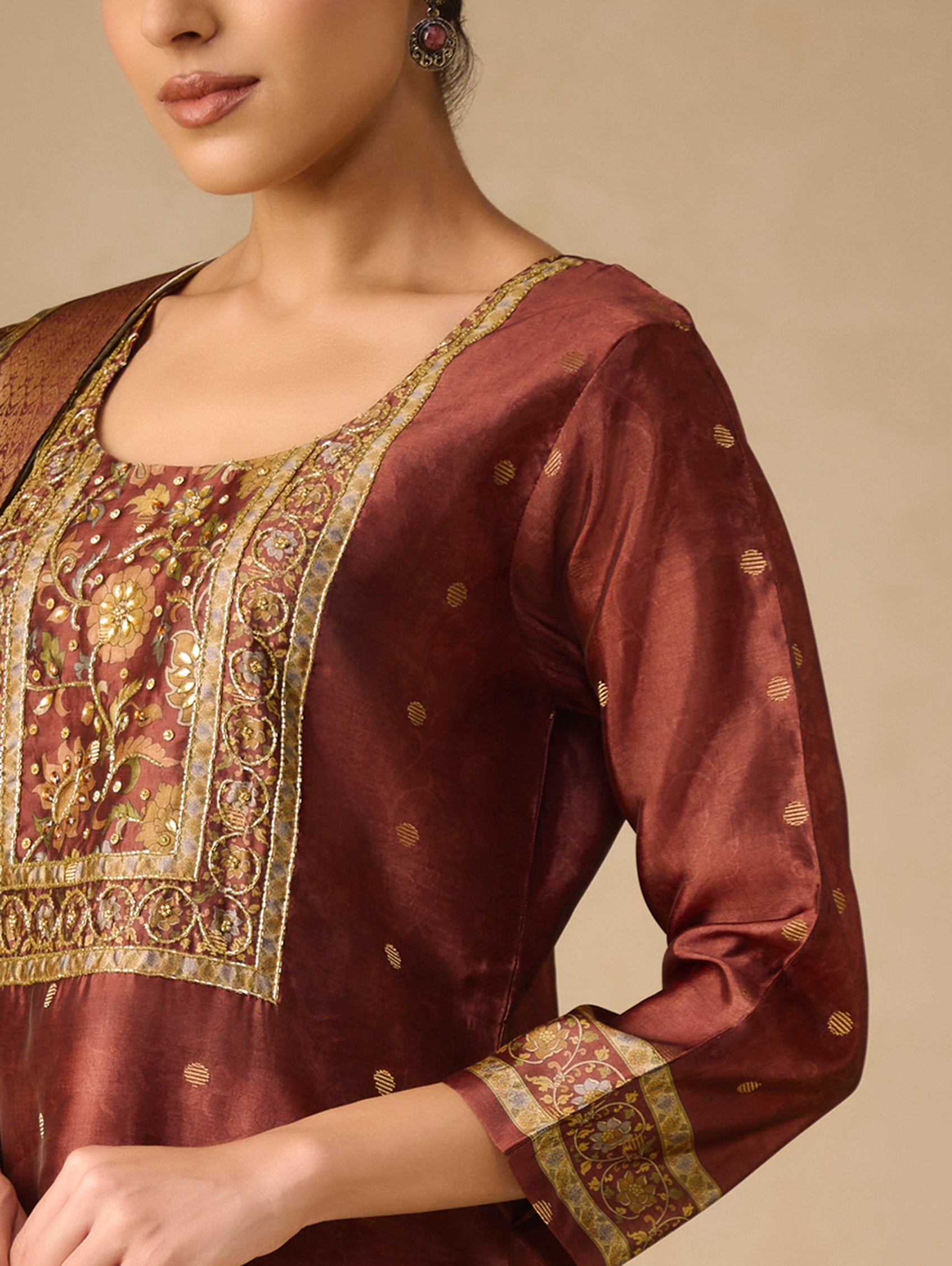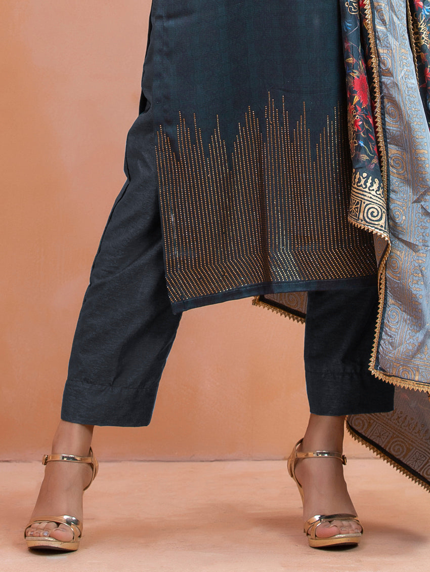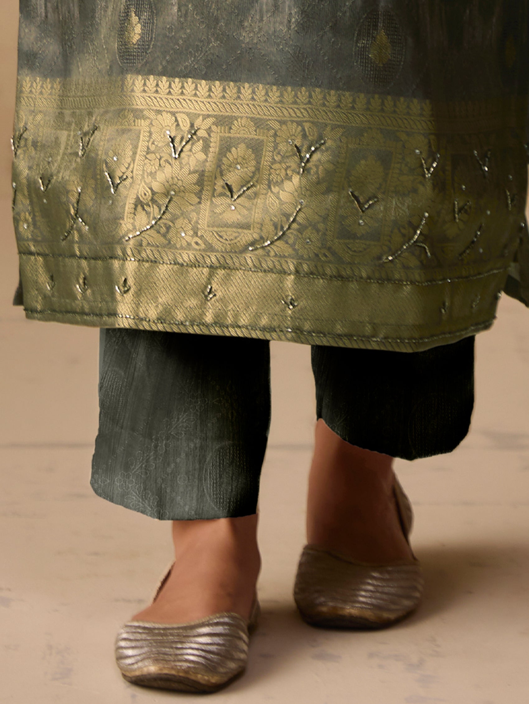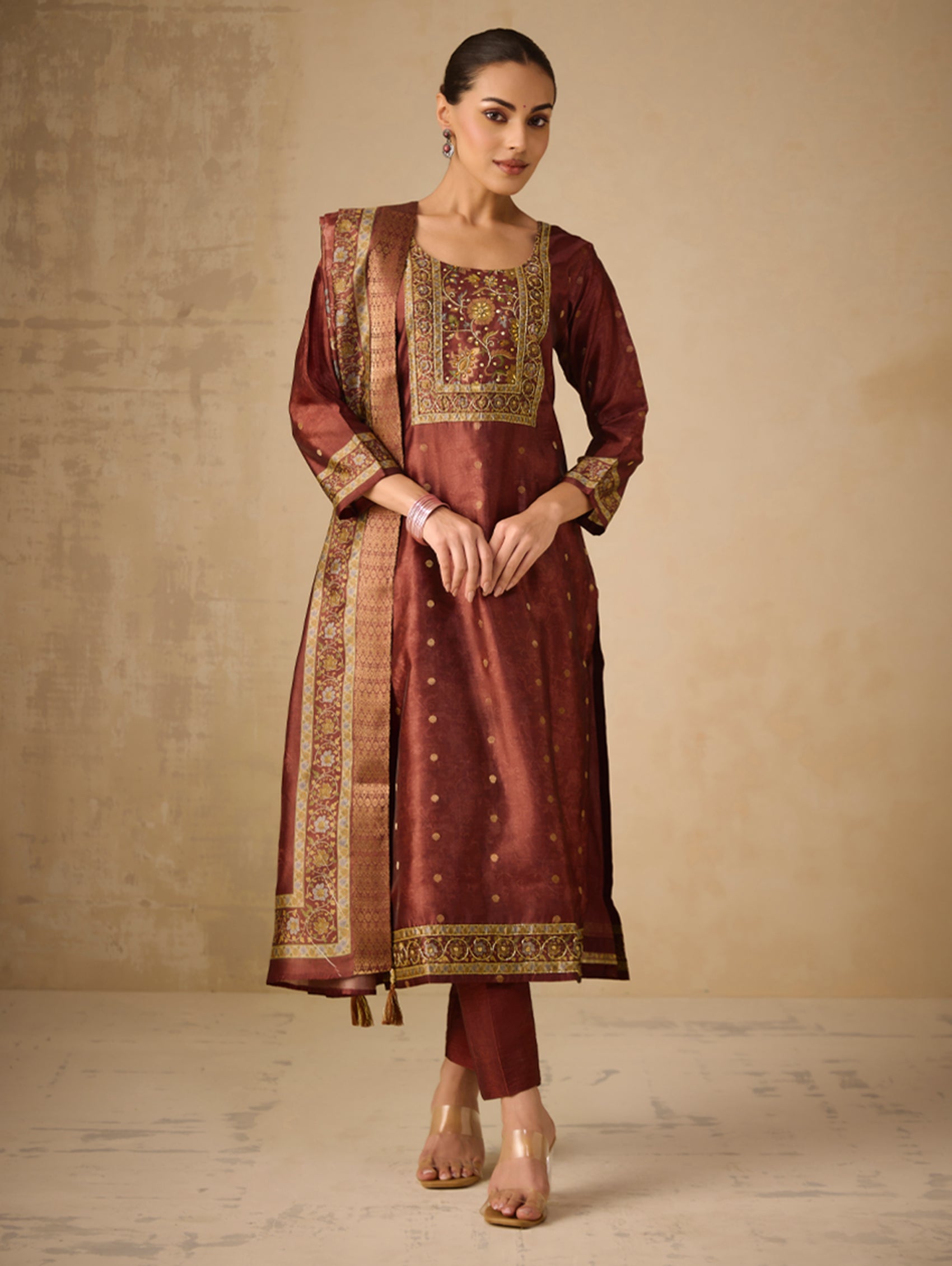Experience the elegance of this digitally printed viscose muslin silk suit set, showcasing a kurta embellished with detailed computerised thread and hand embroidery. It comes with timeless pants and a matching digitally printed muslin silk dupatta. Perfect for those who value sophisticated fashion, this exquisite set adds lasting grace to your collection. Don’t miss out on owning this distinctive and stylish ensemble!