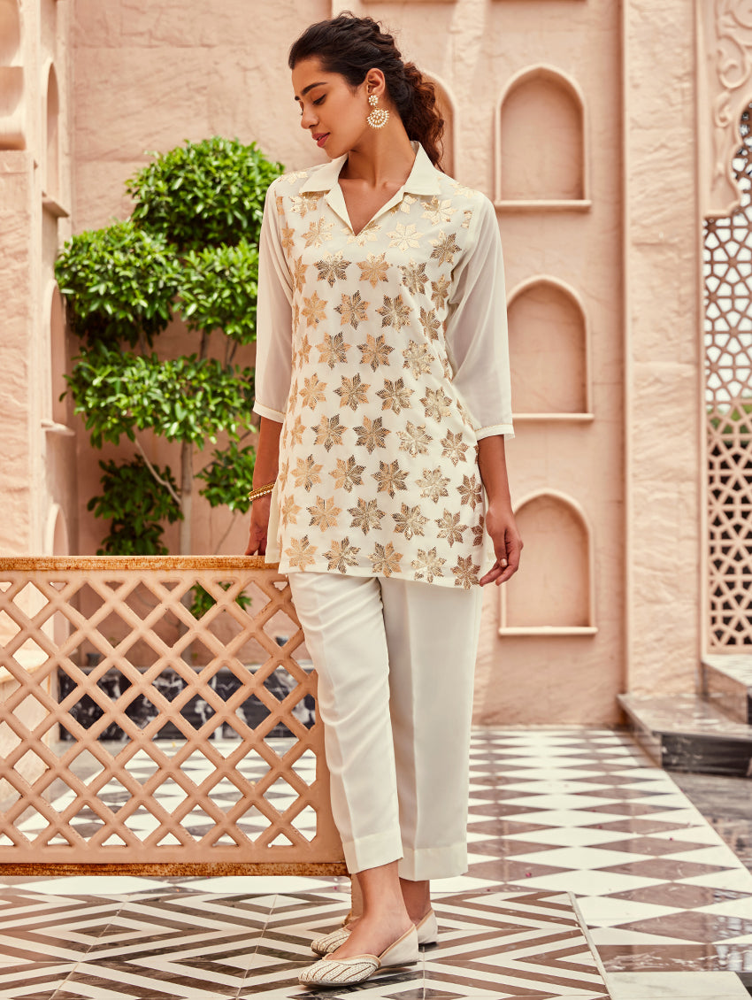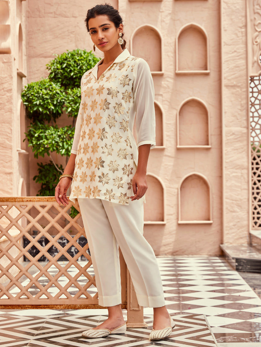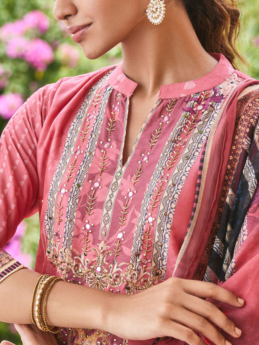 All our products are carefully designed, with each design line exhibiting intricate details depicting the rich Indian artisanal work such as hand embroidery, block print, zardozi work, knot work, tie & dye, zari work, aari embroideries, all in fusion with few modern day digital prints, screen printing and computerised thread embroideries.