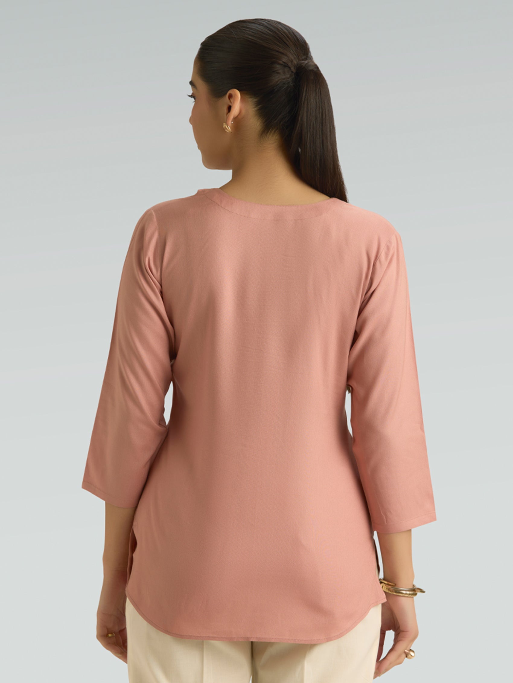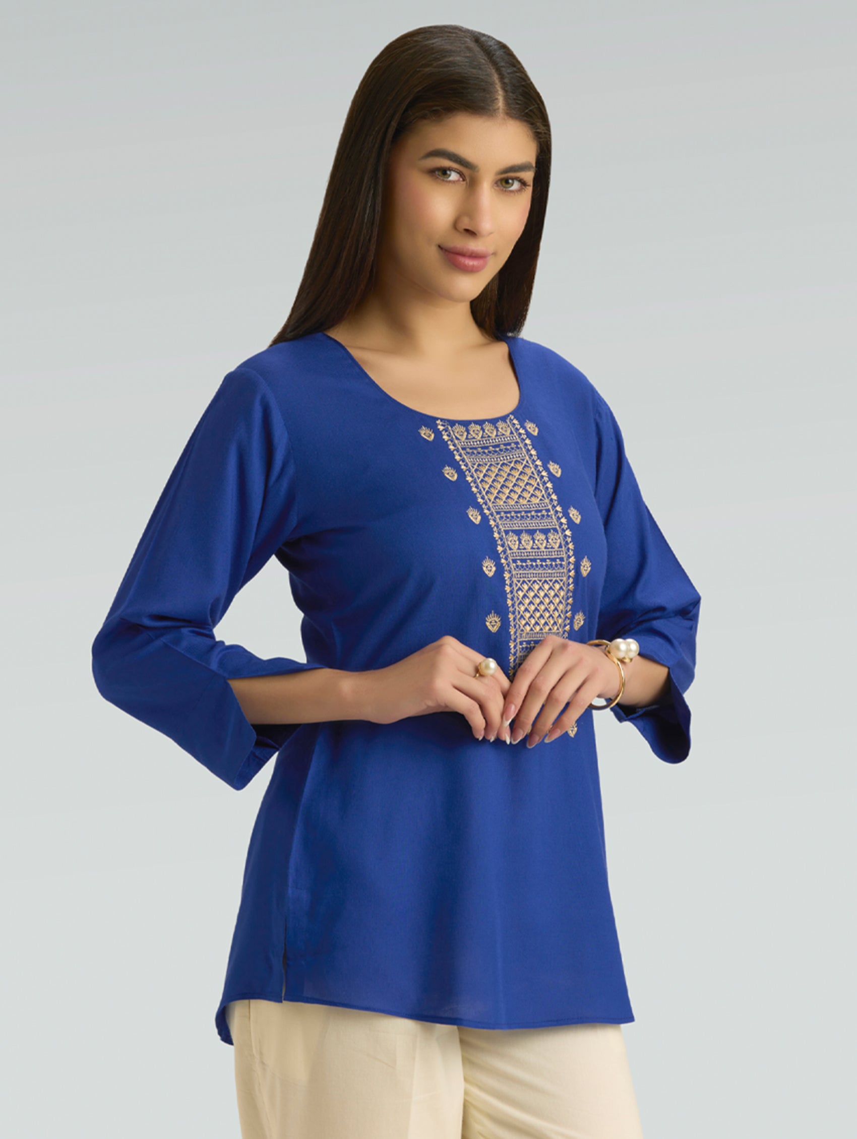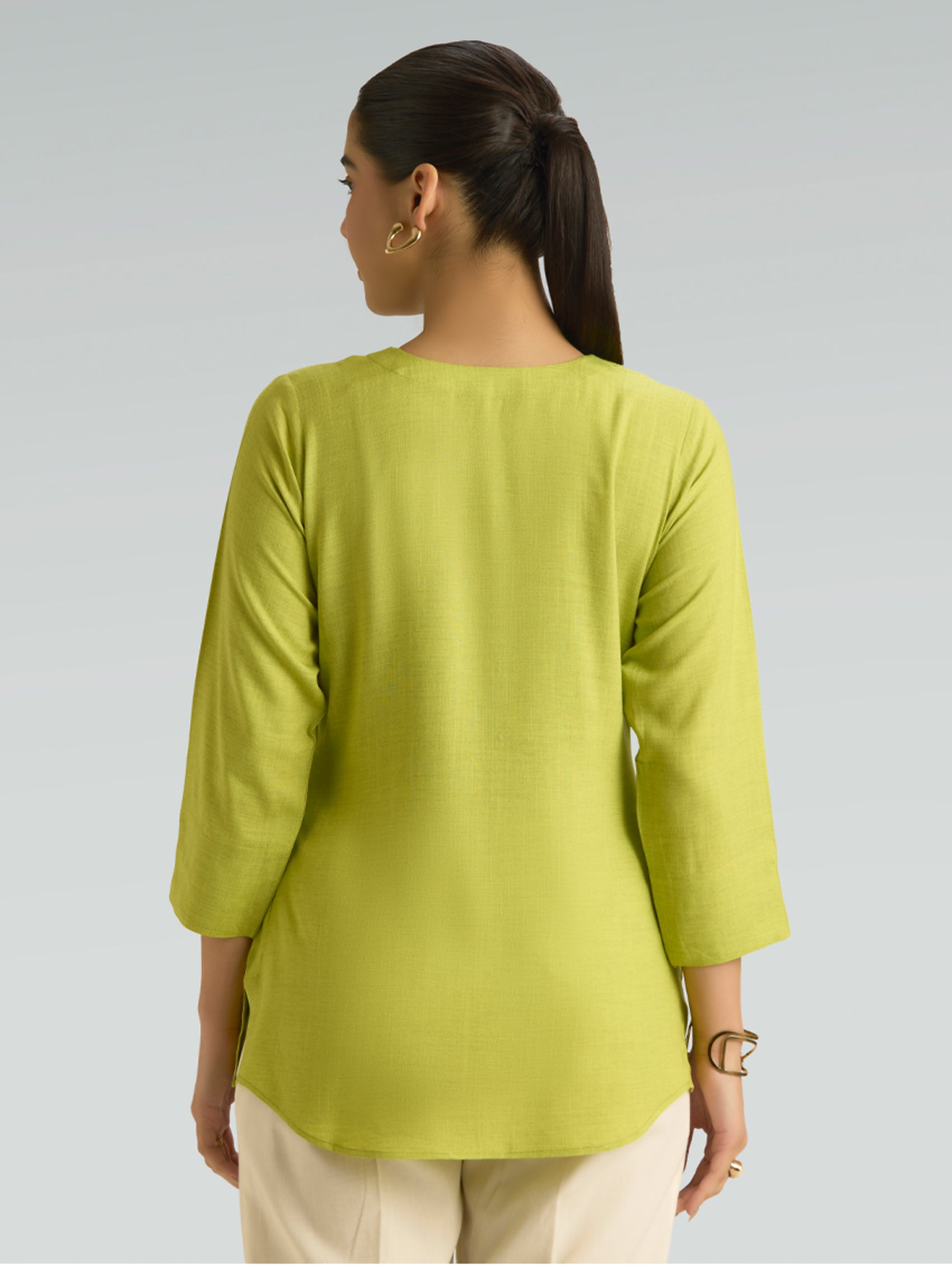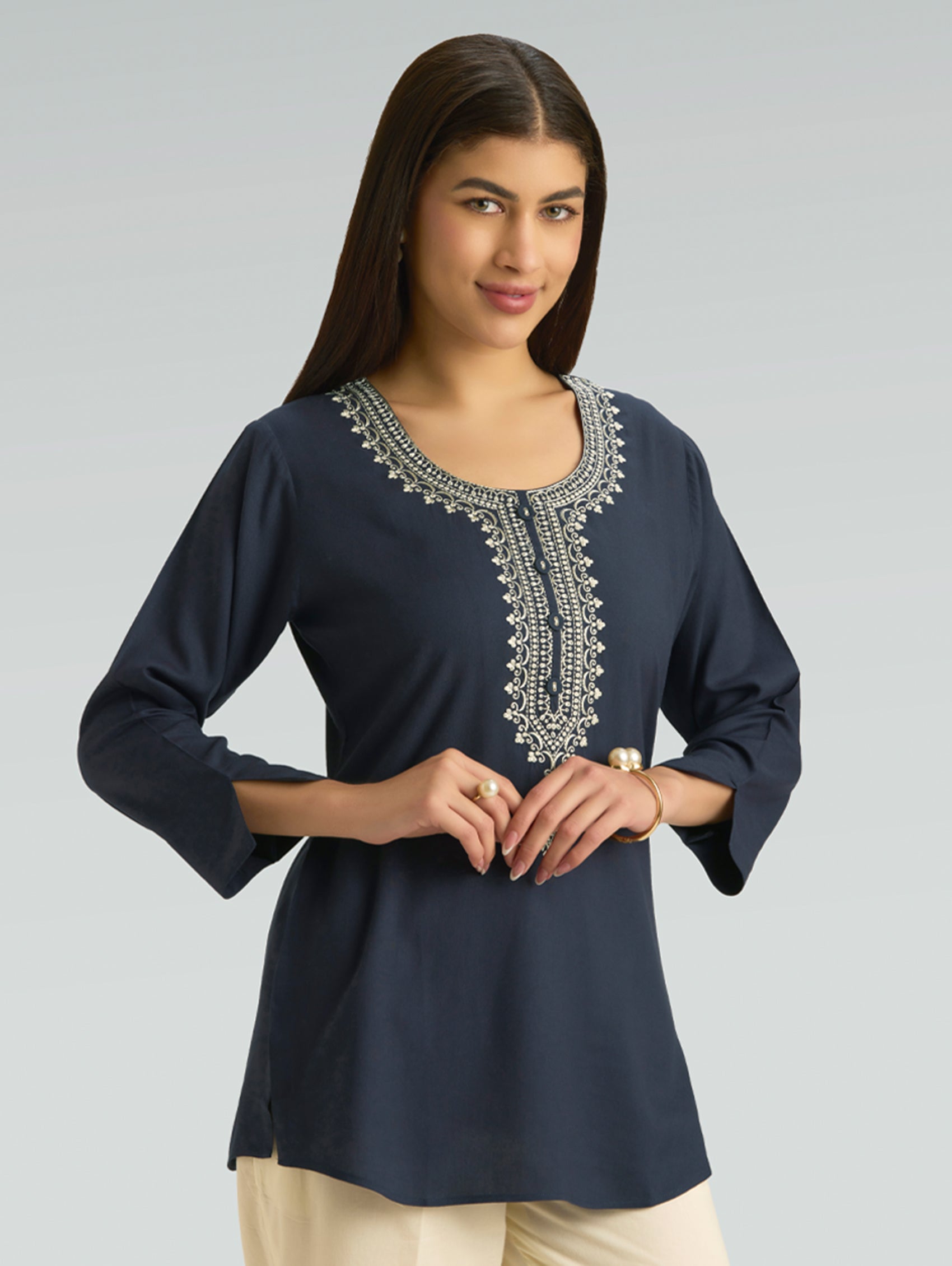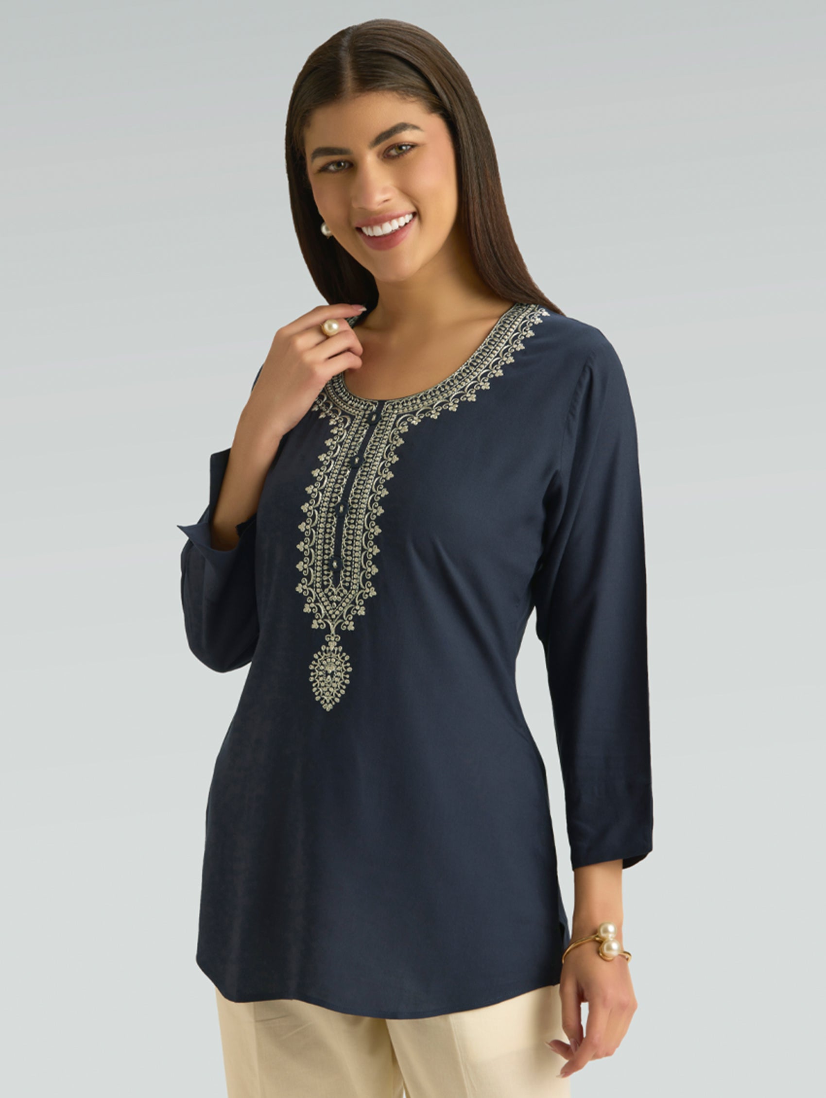 • Tunic with a keyhole round neckline, and three-fourth sleeves.