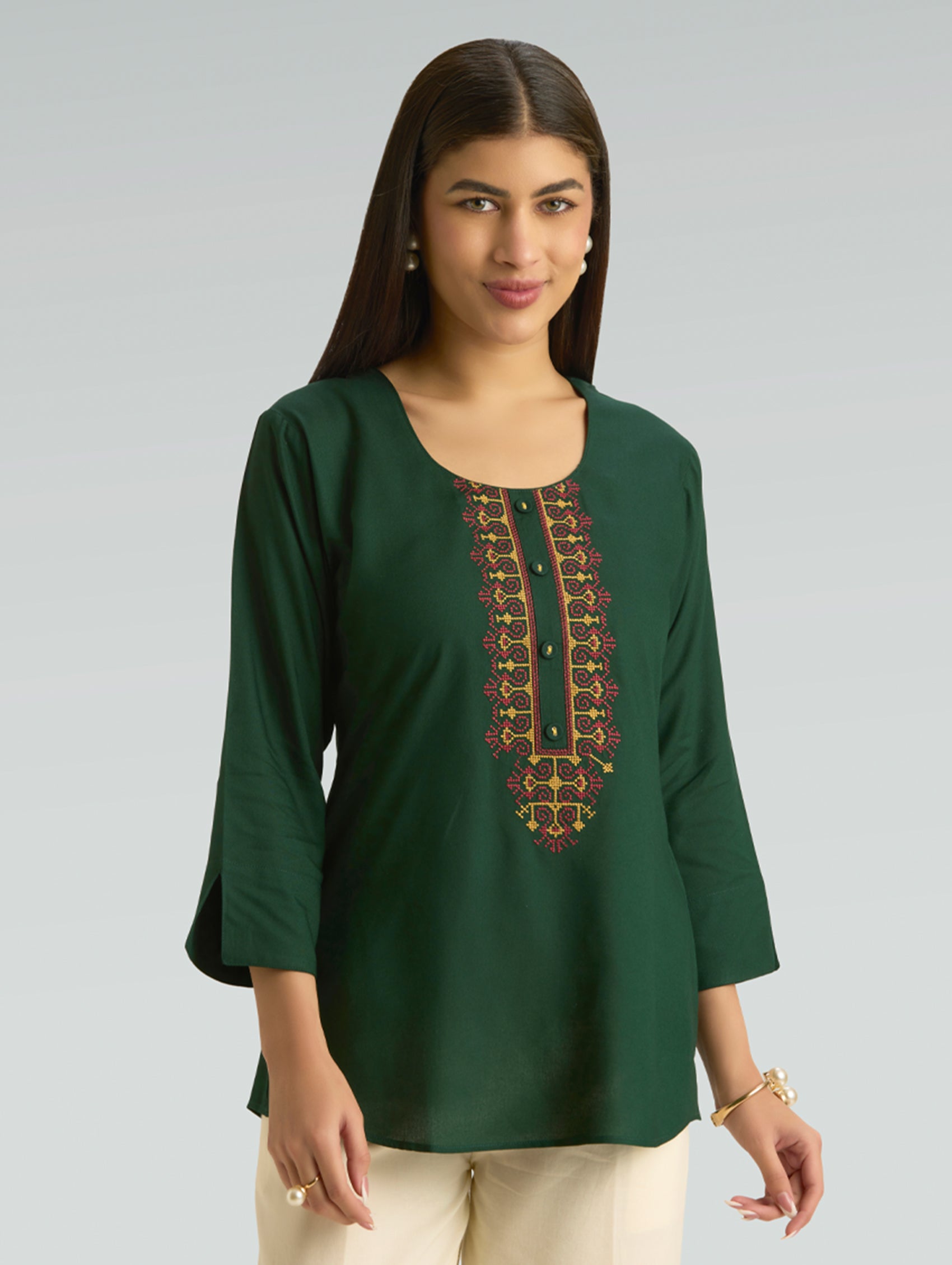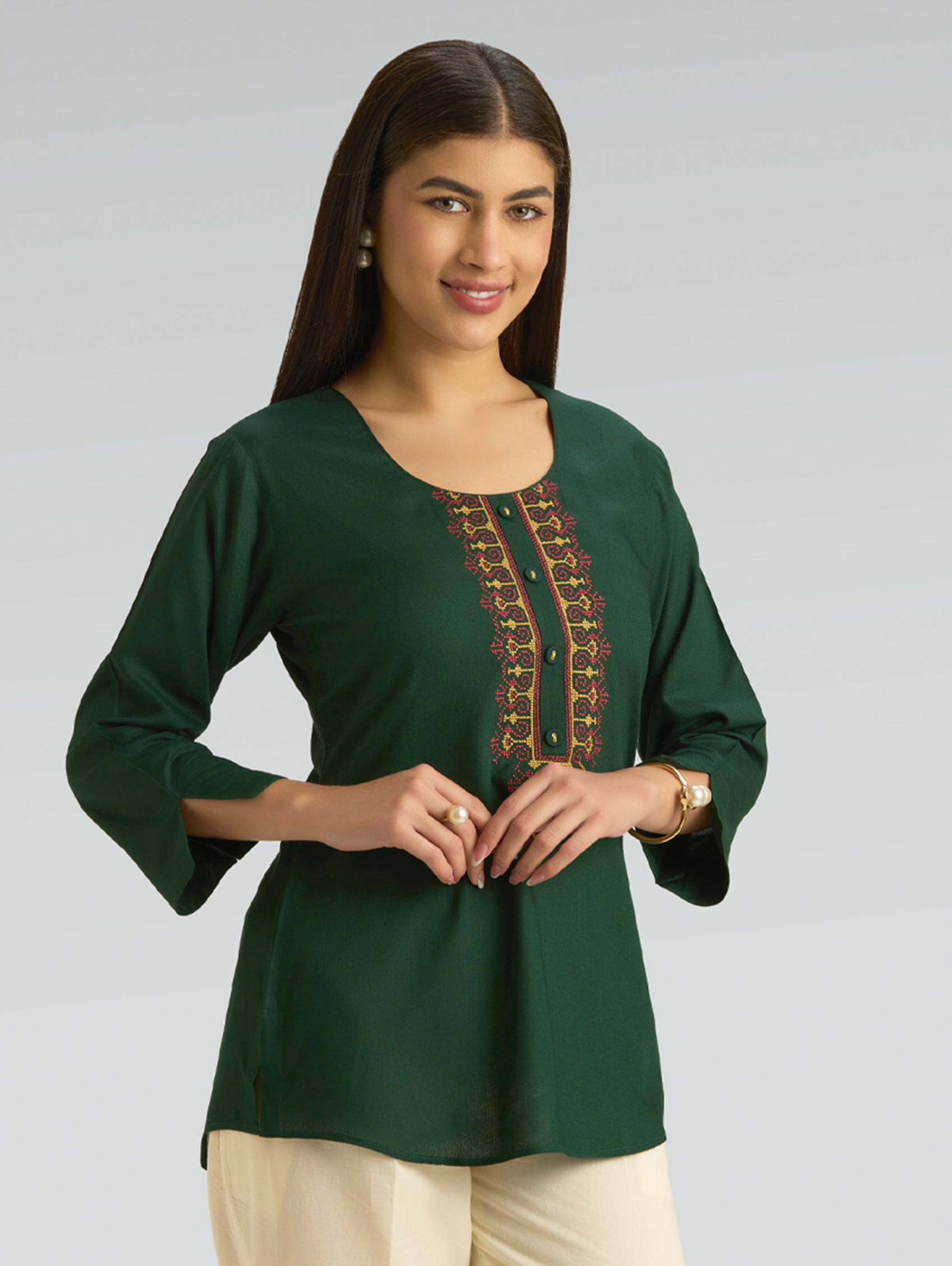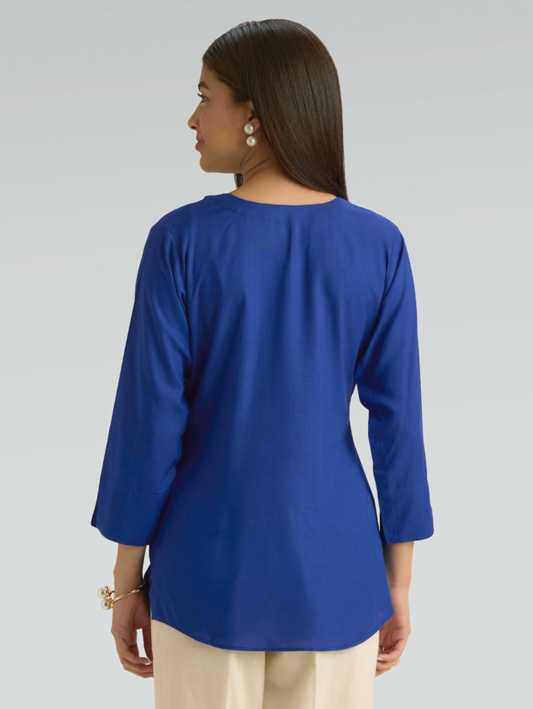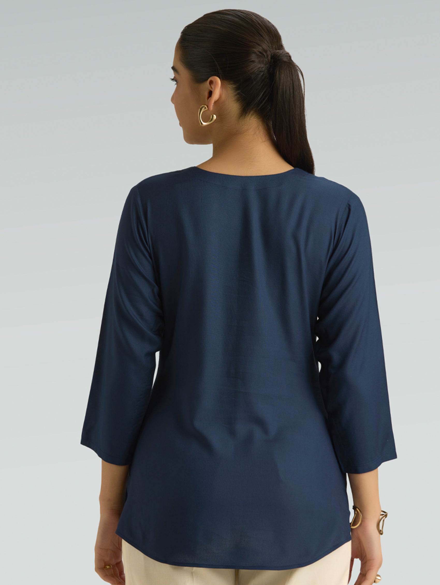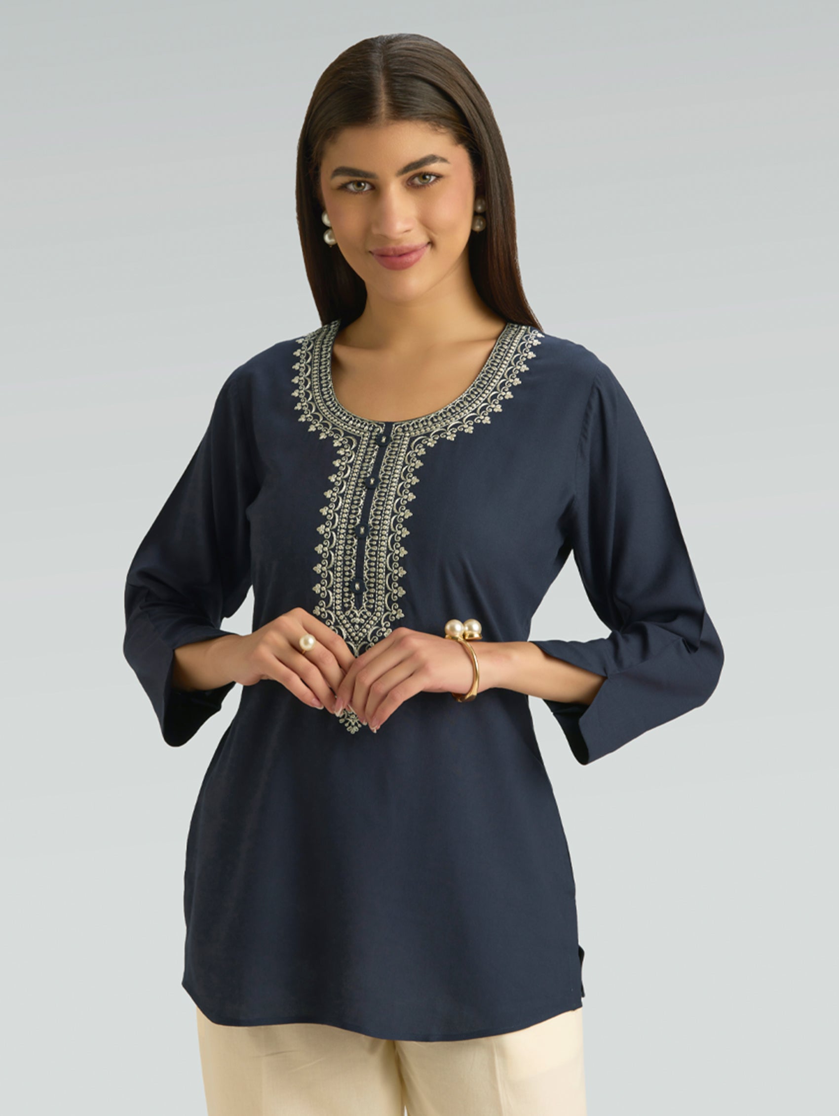 • Tunic with a keyhole round neckline, and three-fourth sleeves.