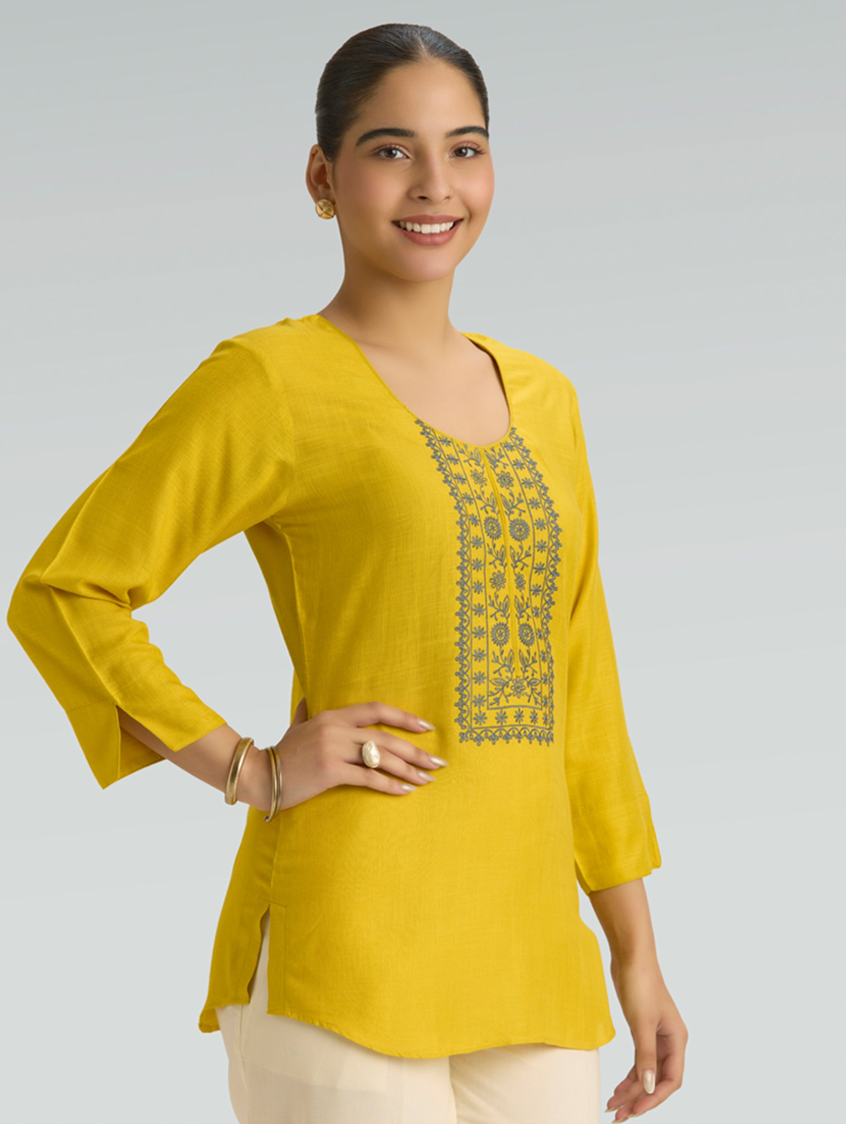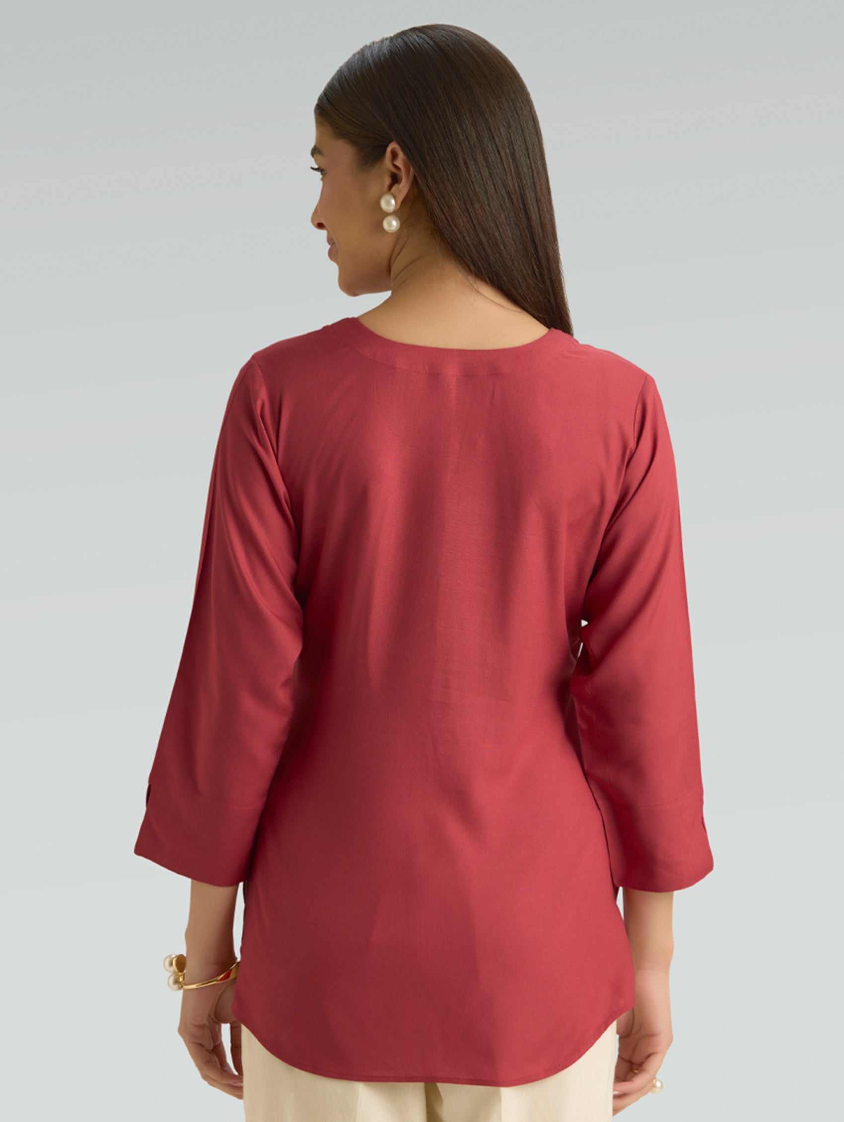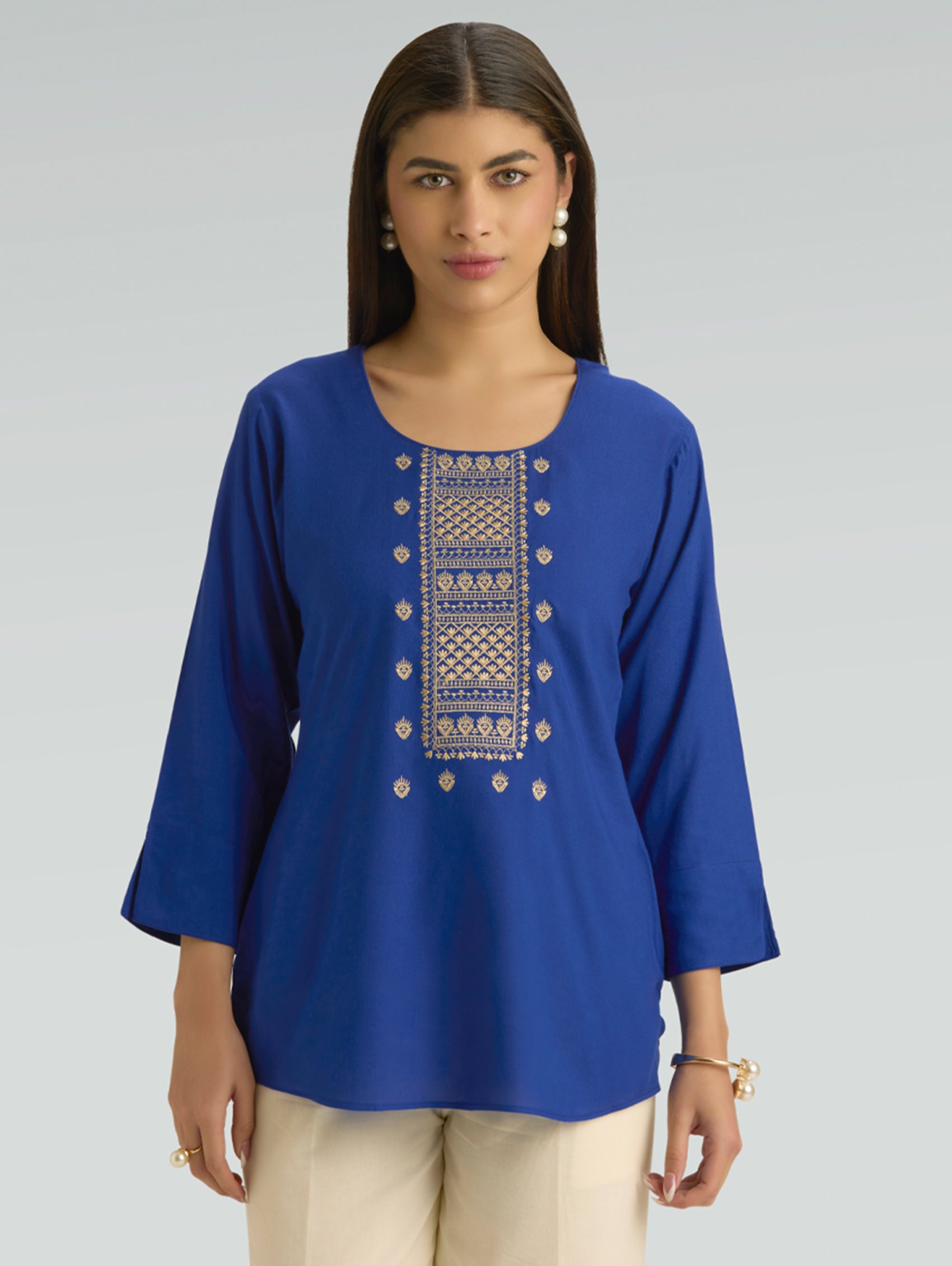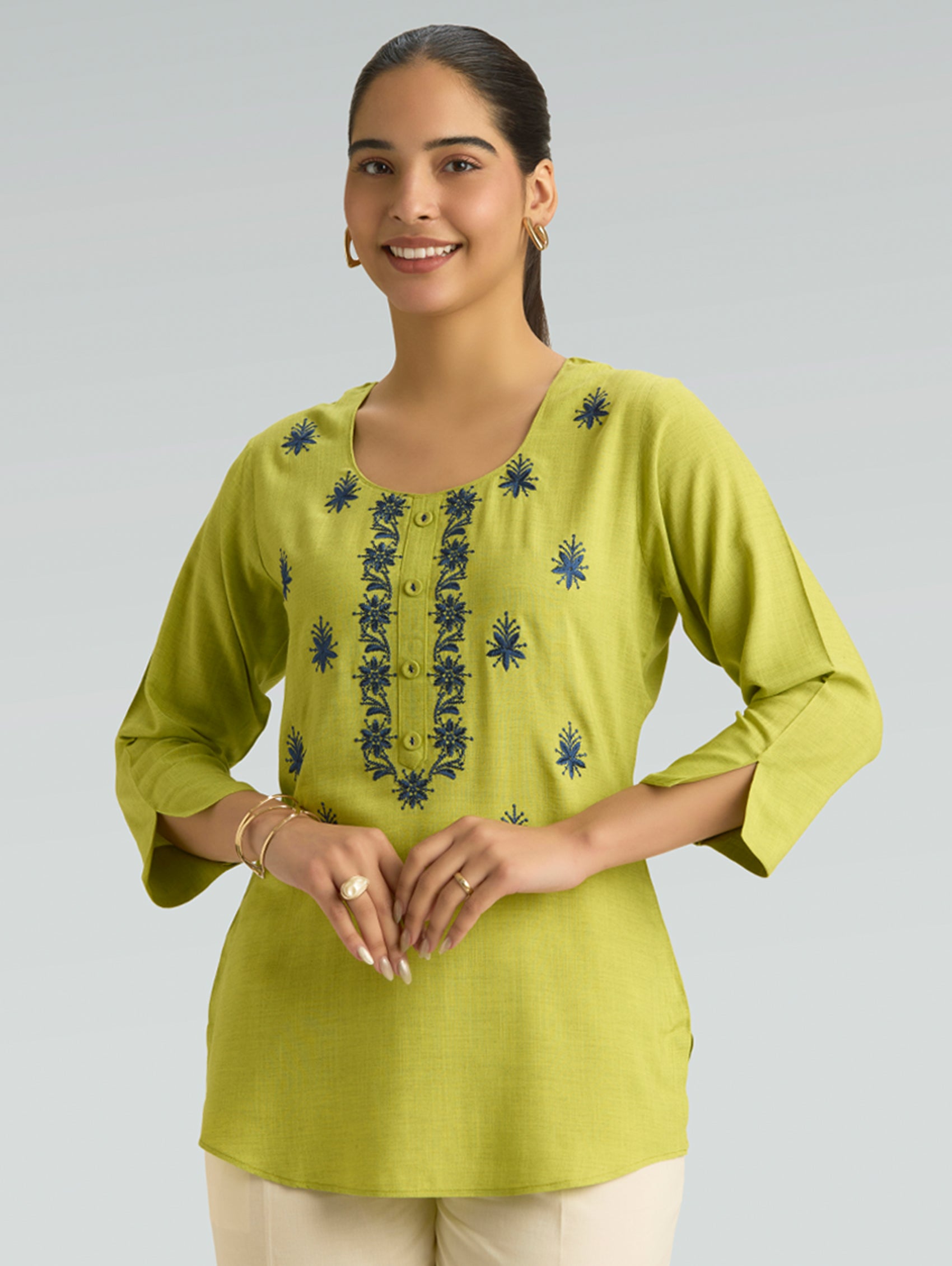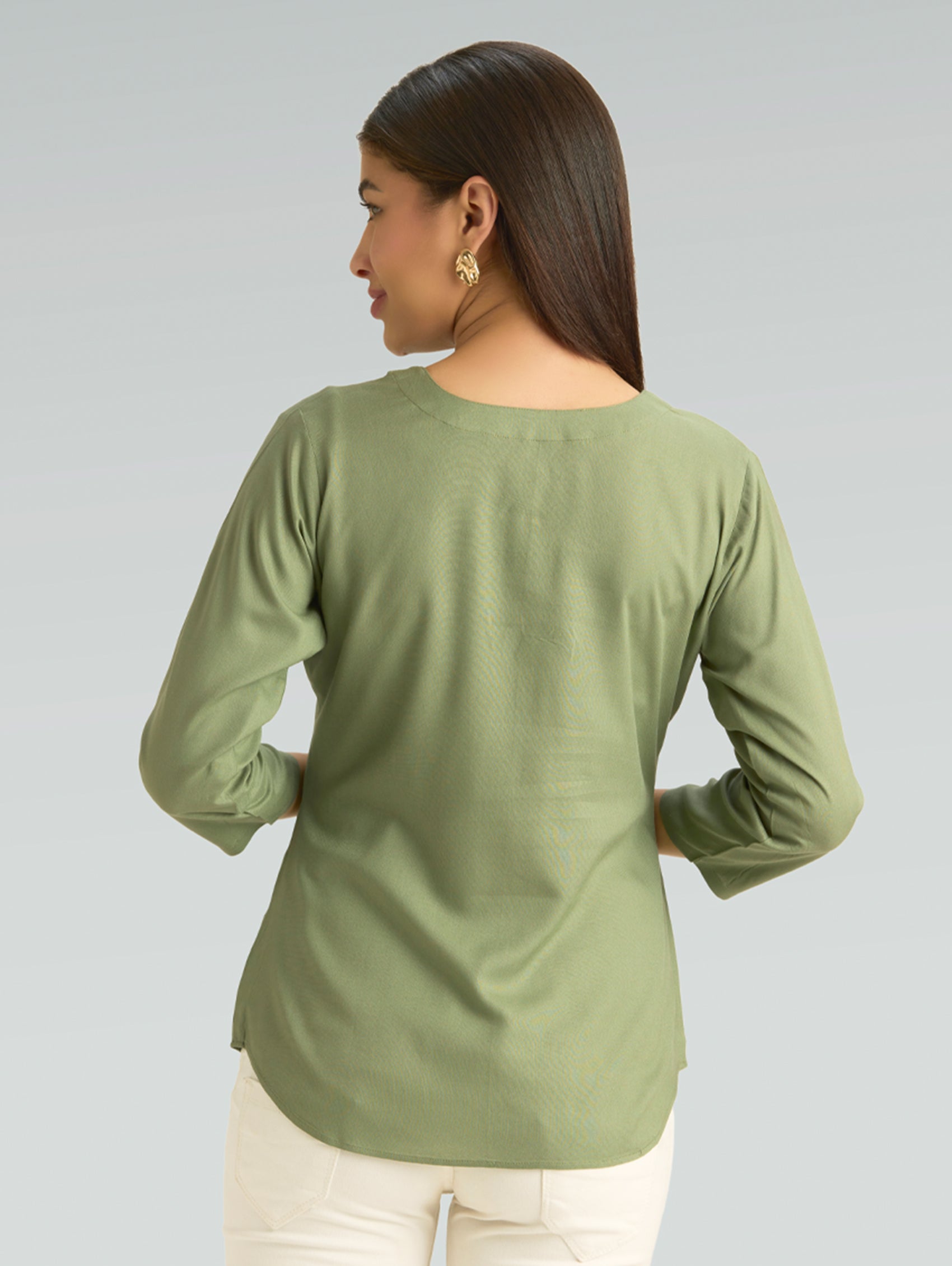 • Tunic with a keyhole round neckline, and three-fourth sleeves.