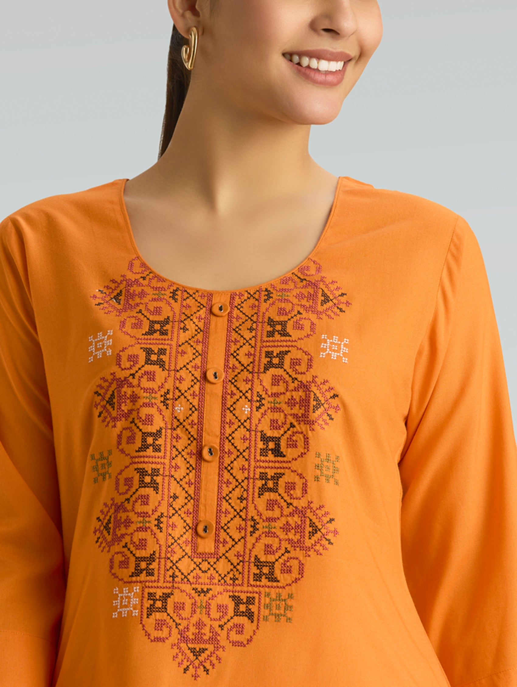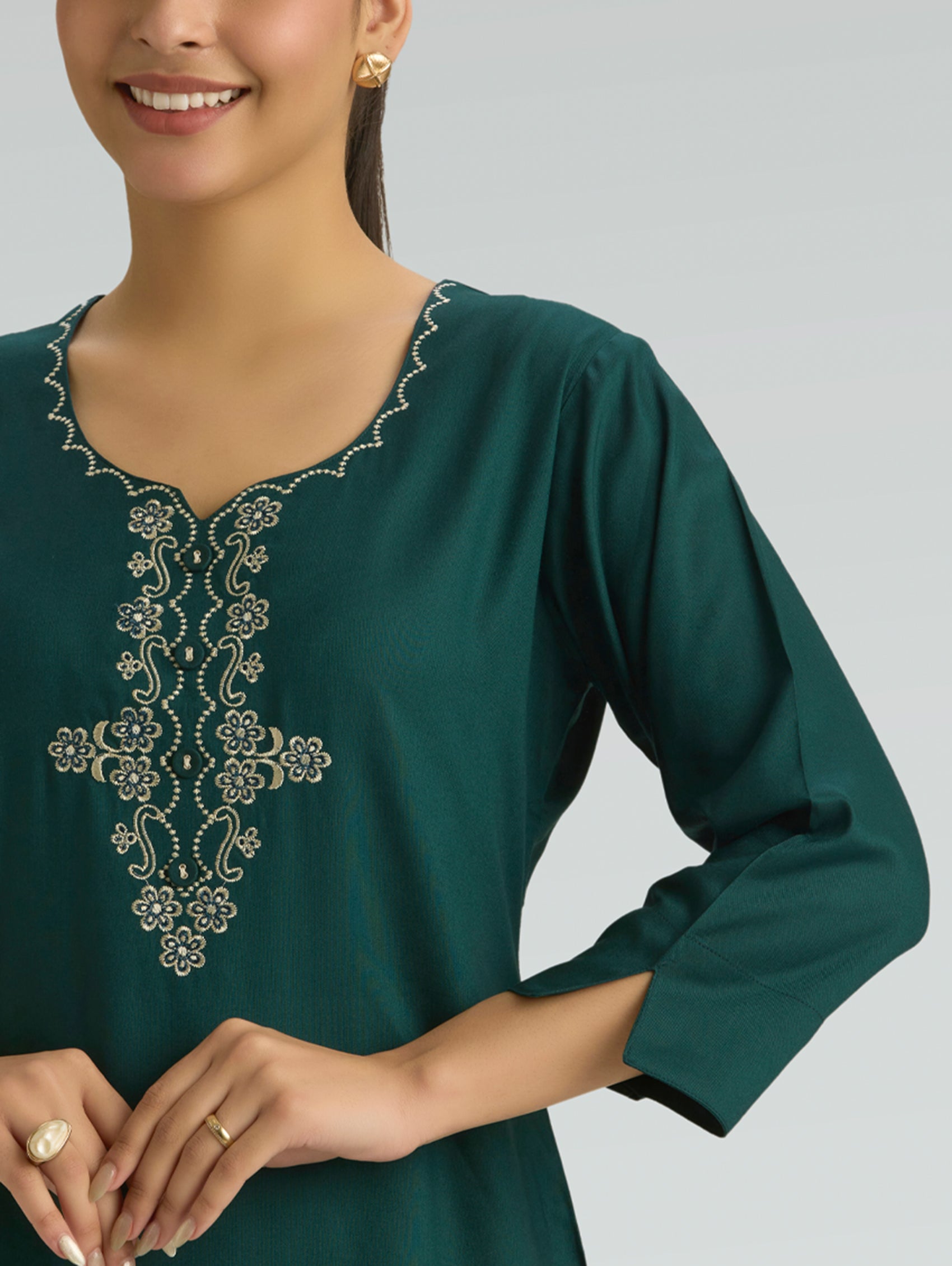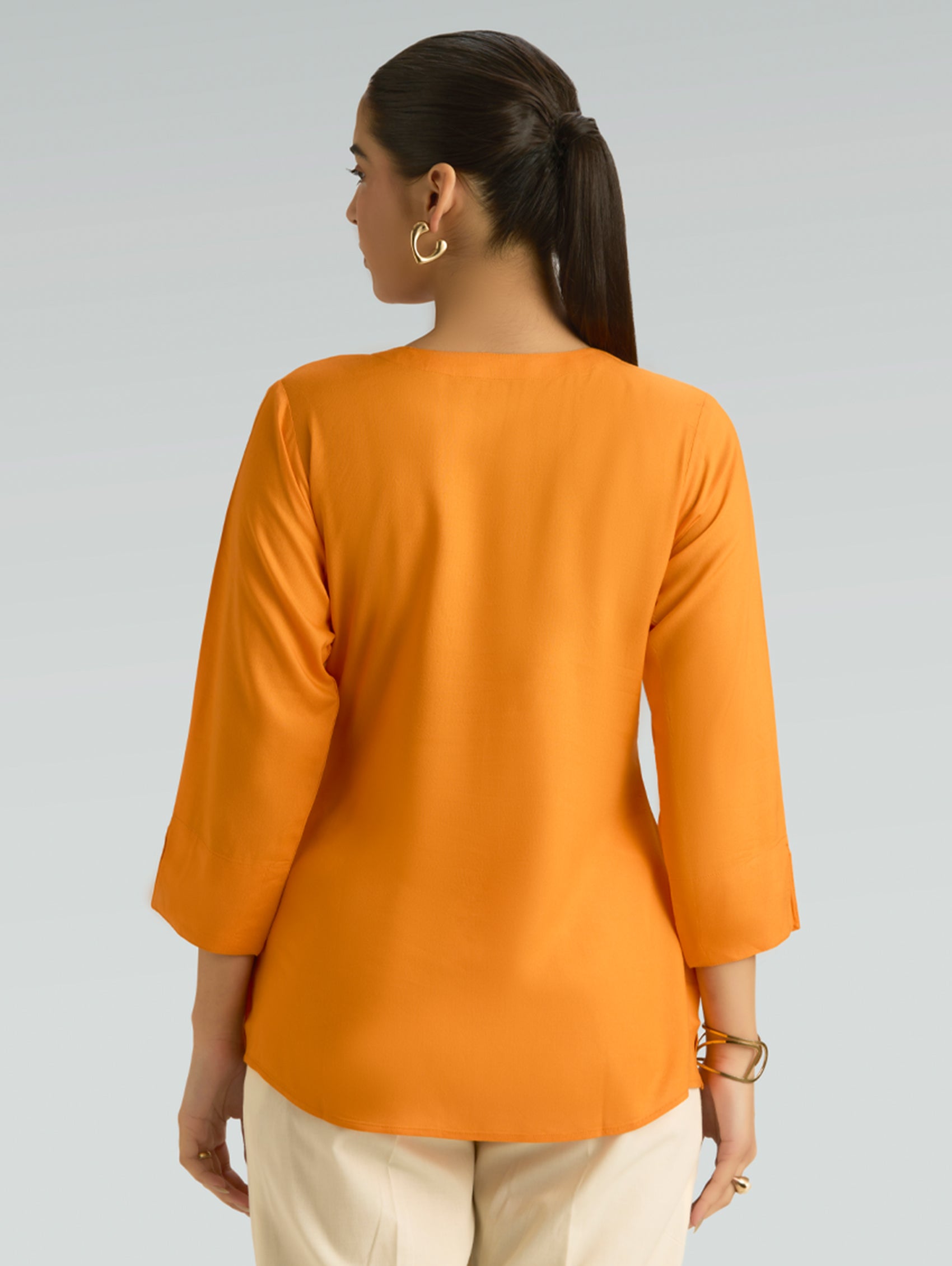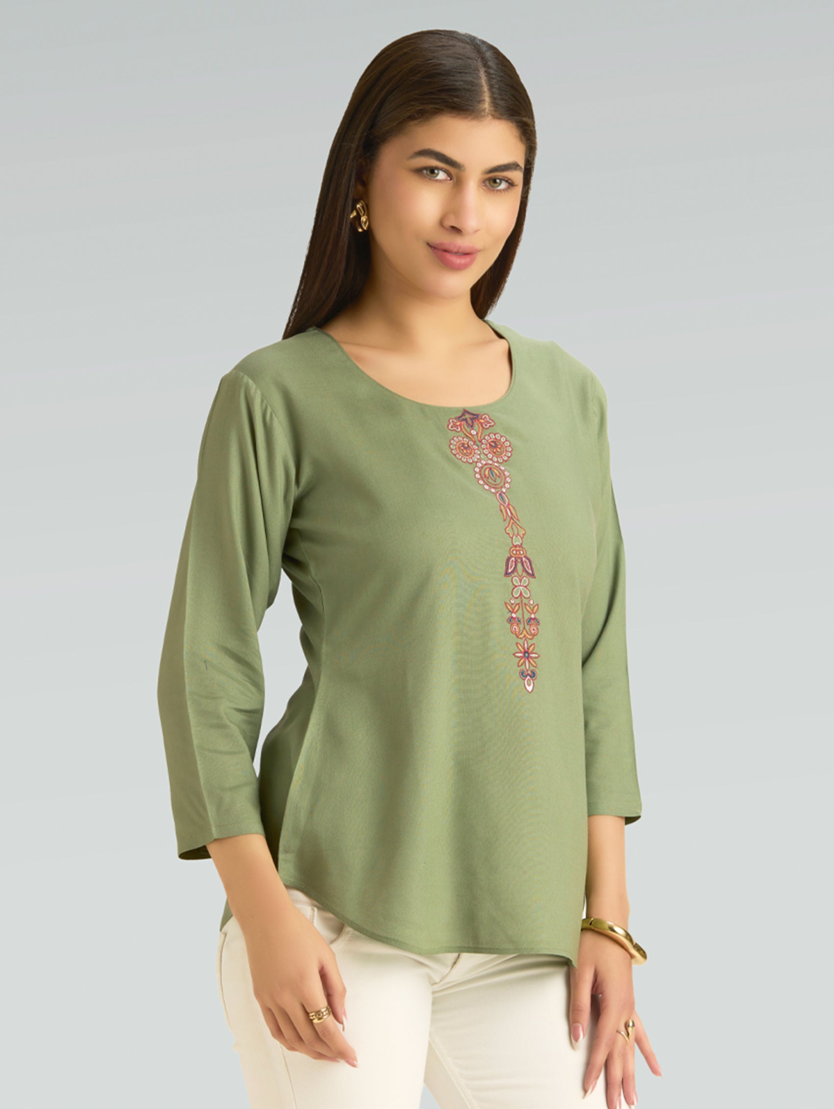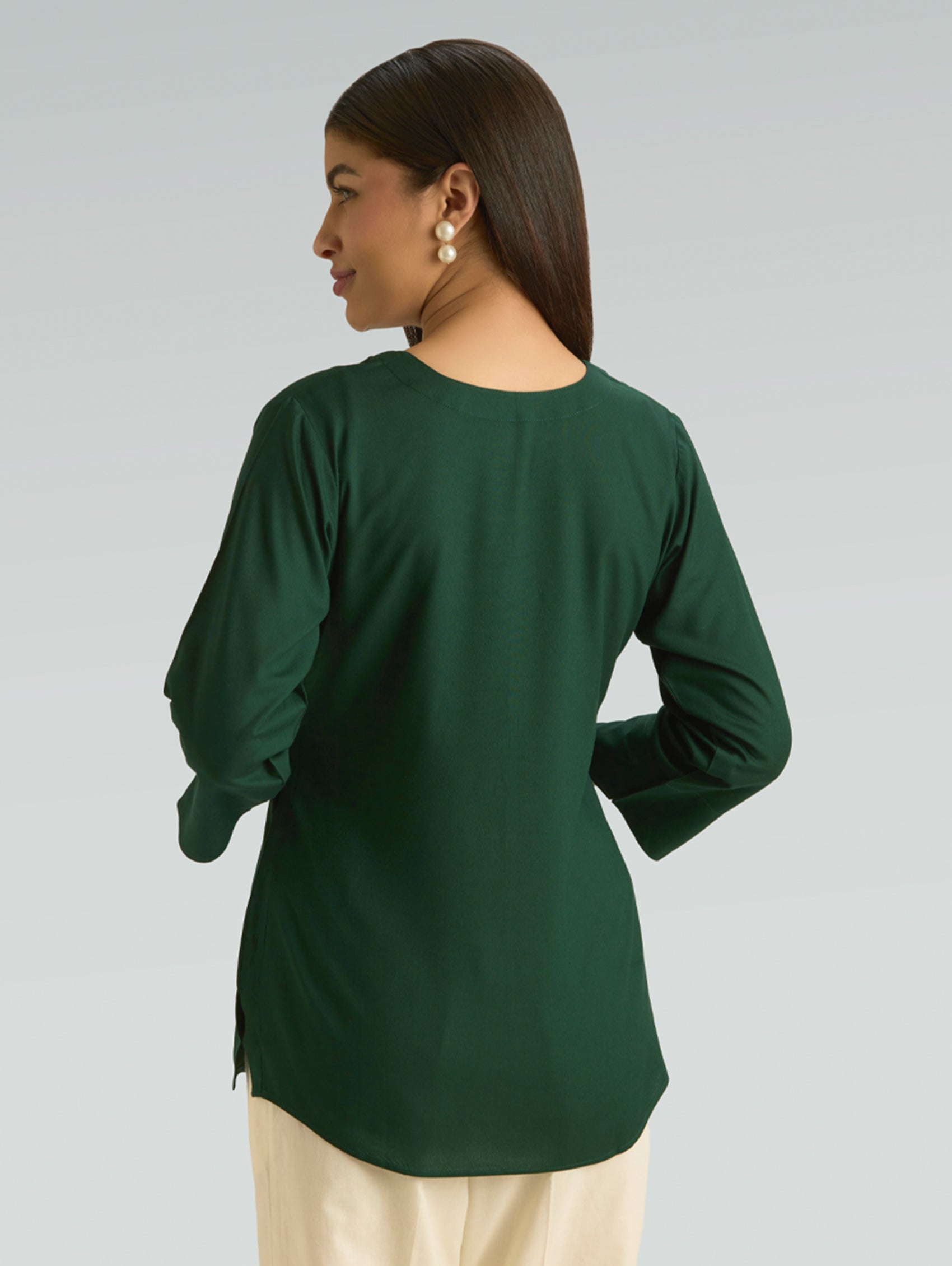 • Tunic with a keyhole round neckline, and three-fourth sleeves.