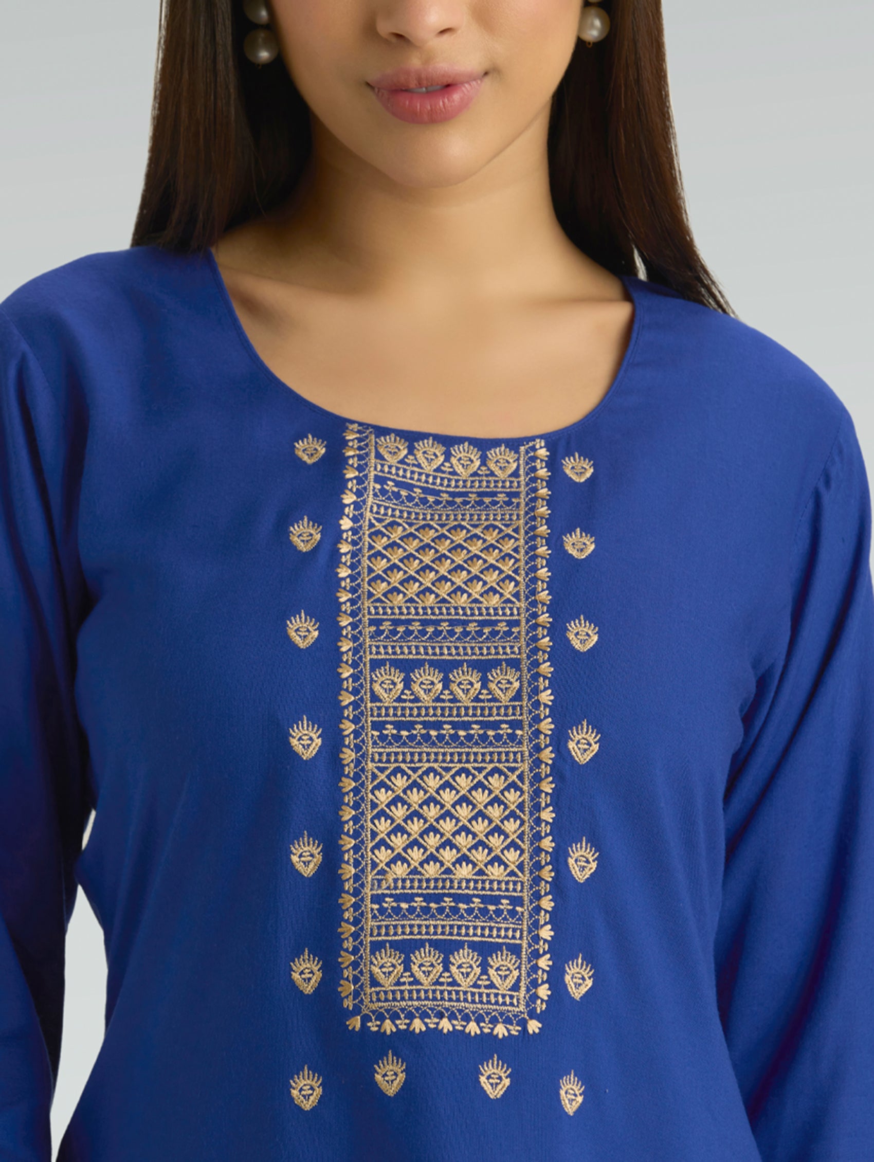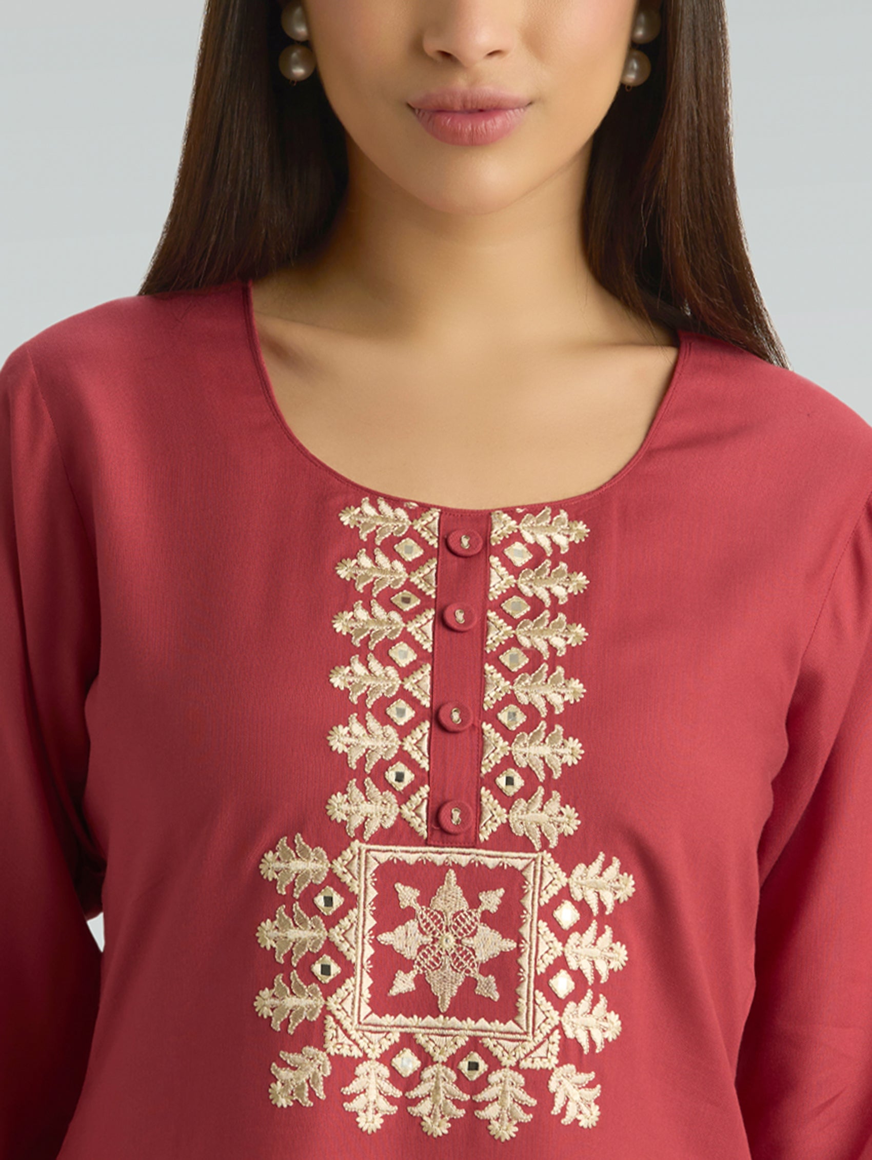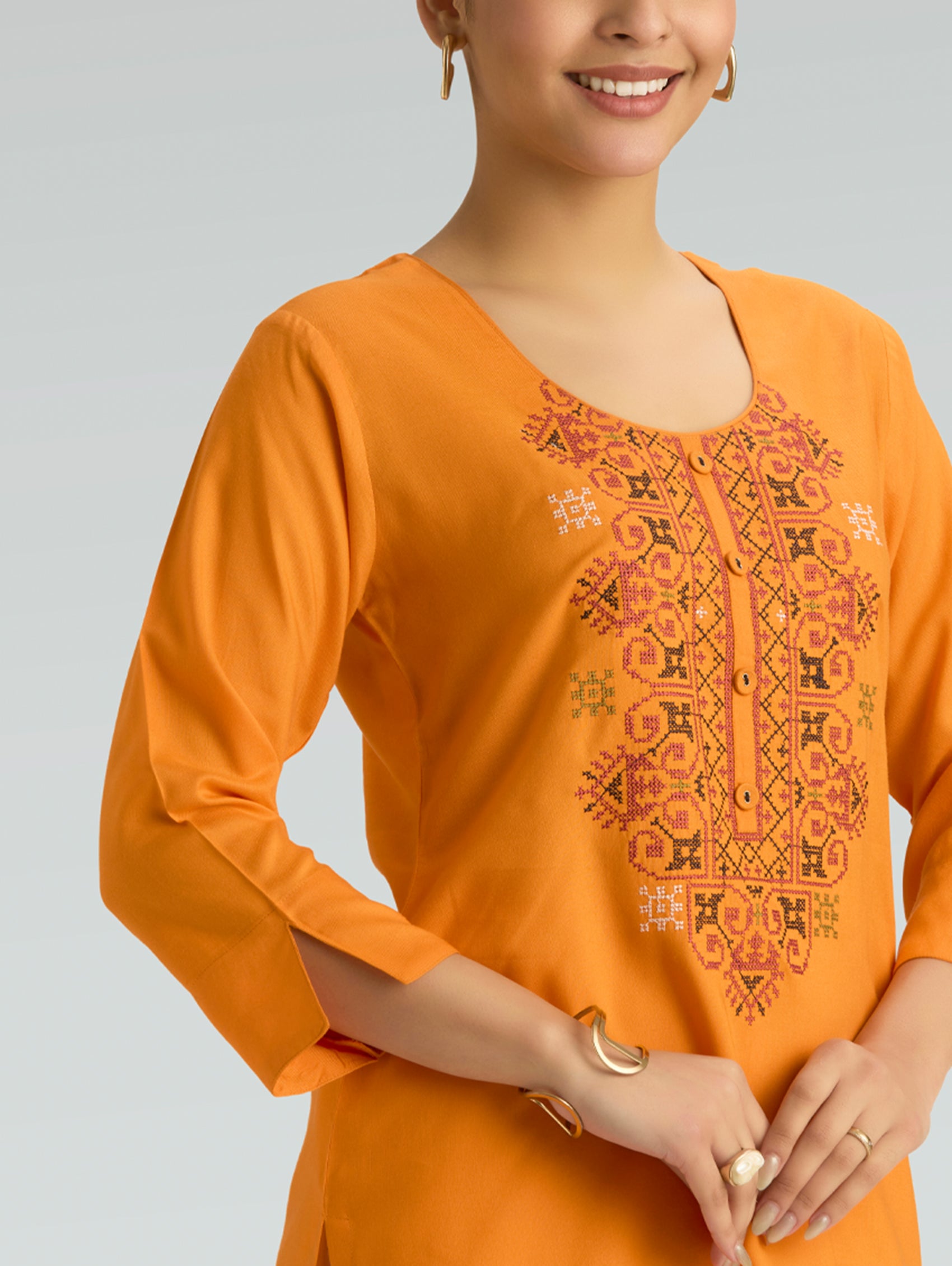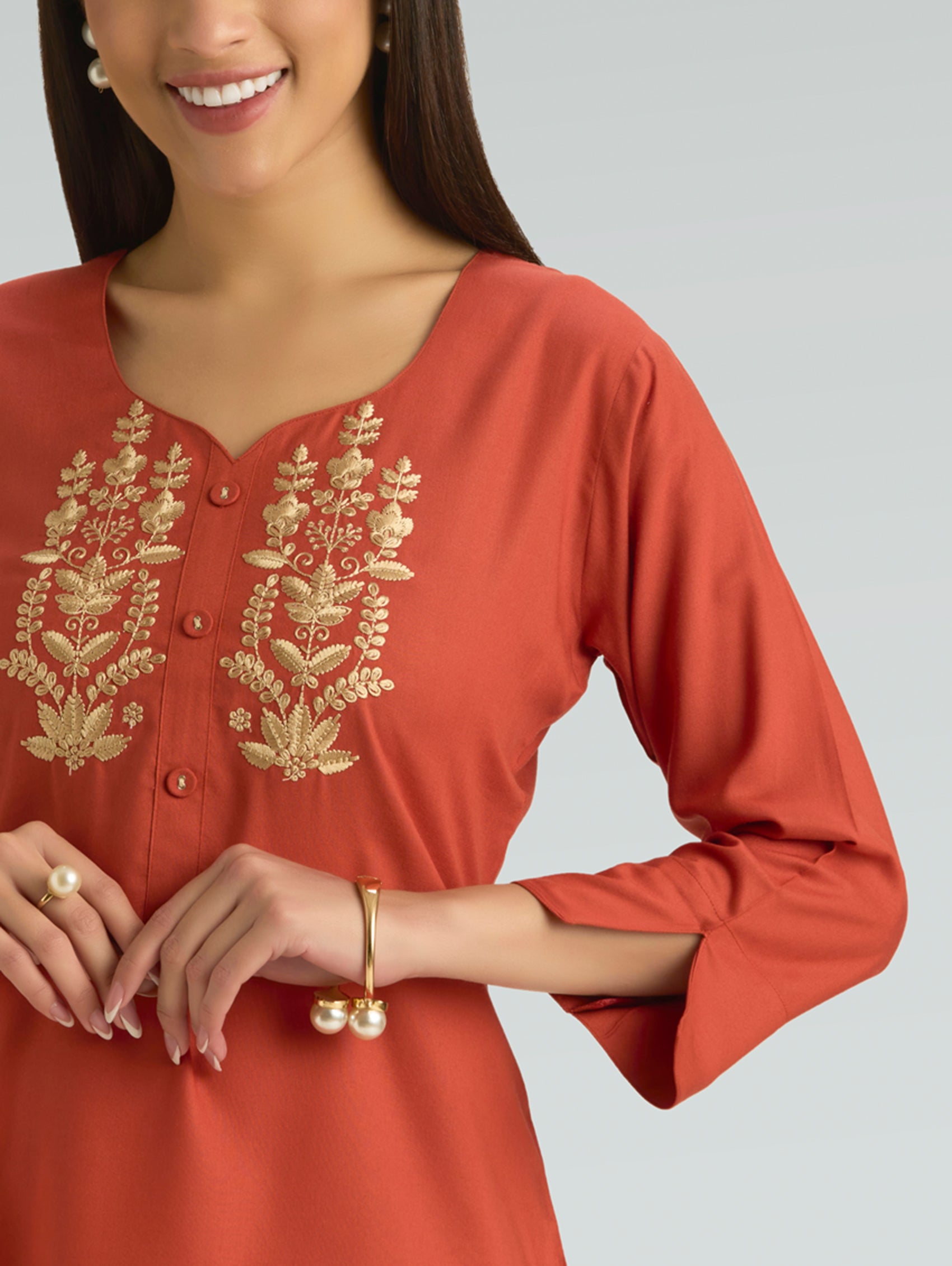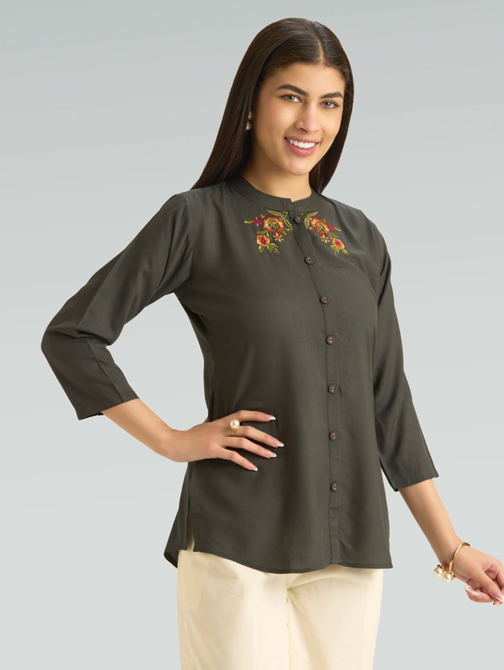 • Tunic with a keyhole round neckline, and three-fourth sleeves.