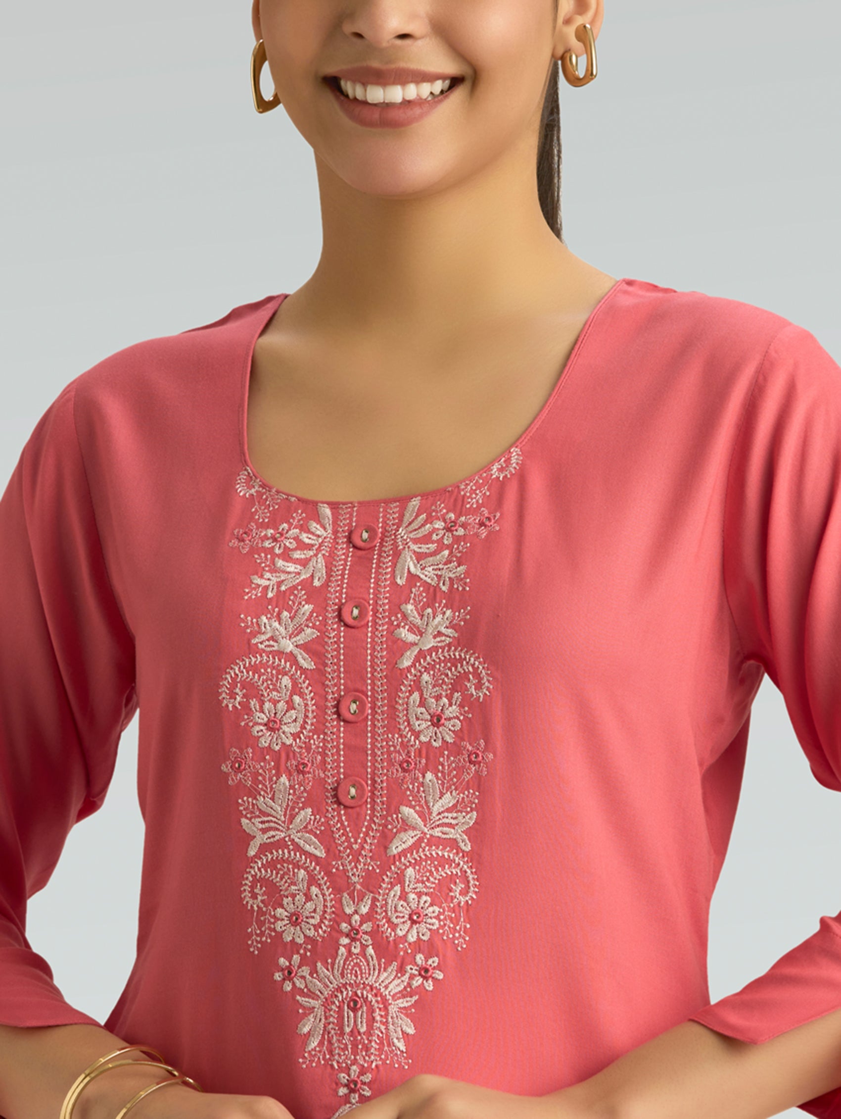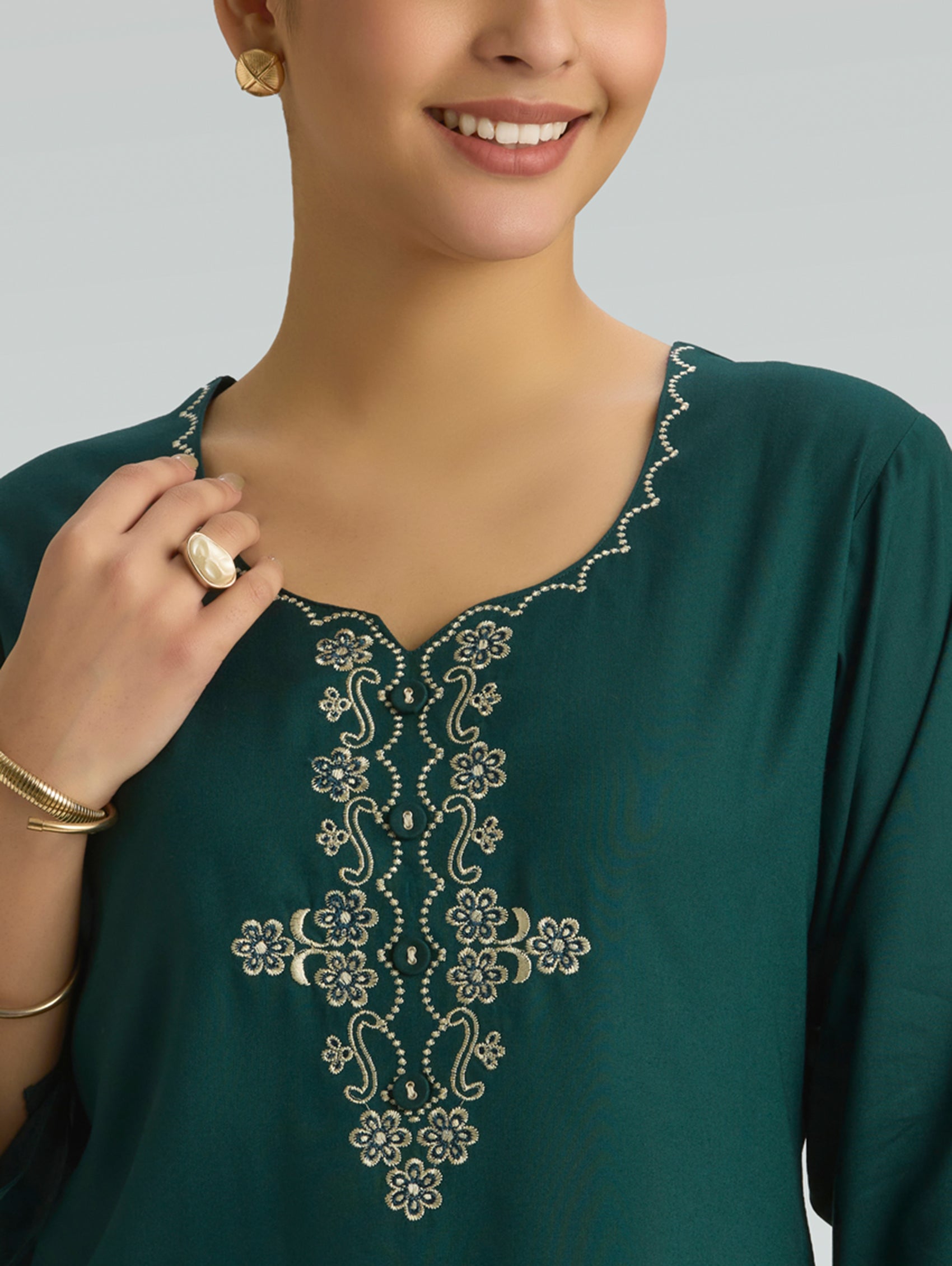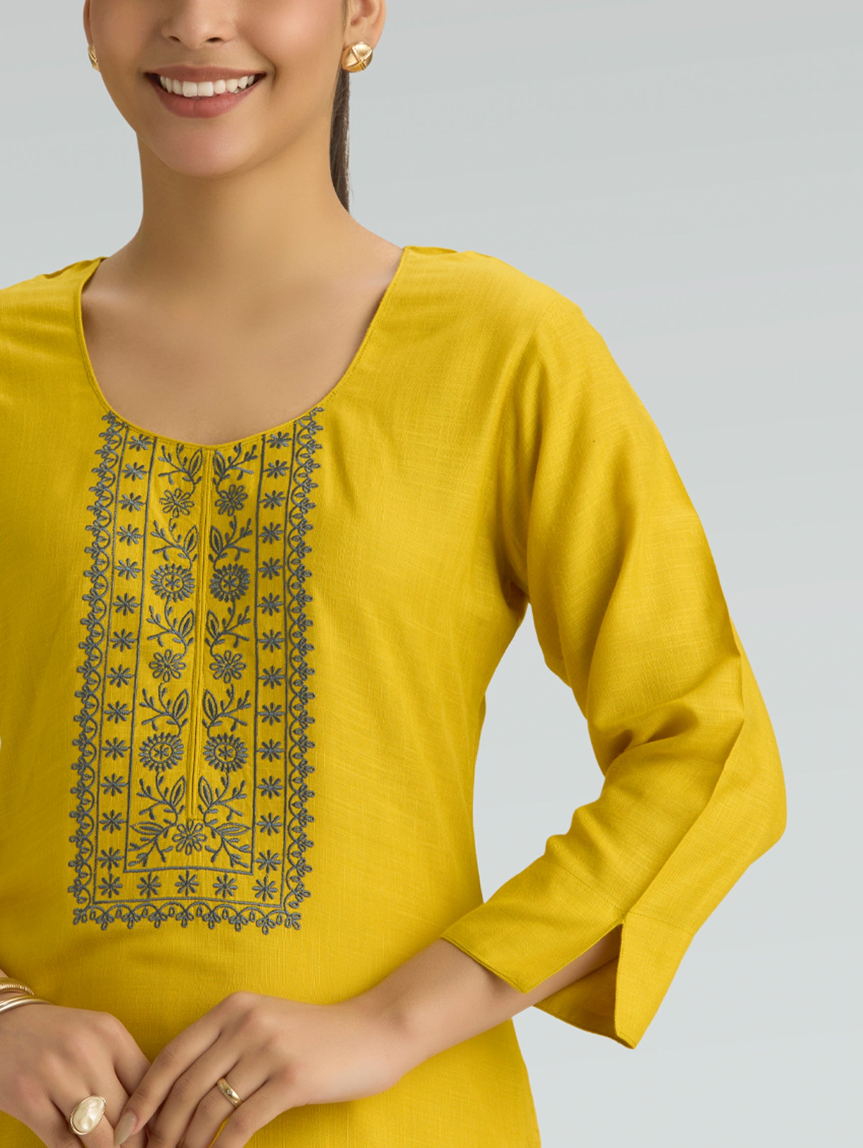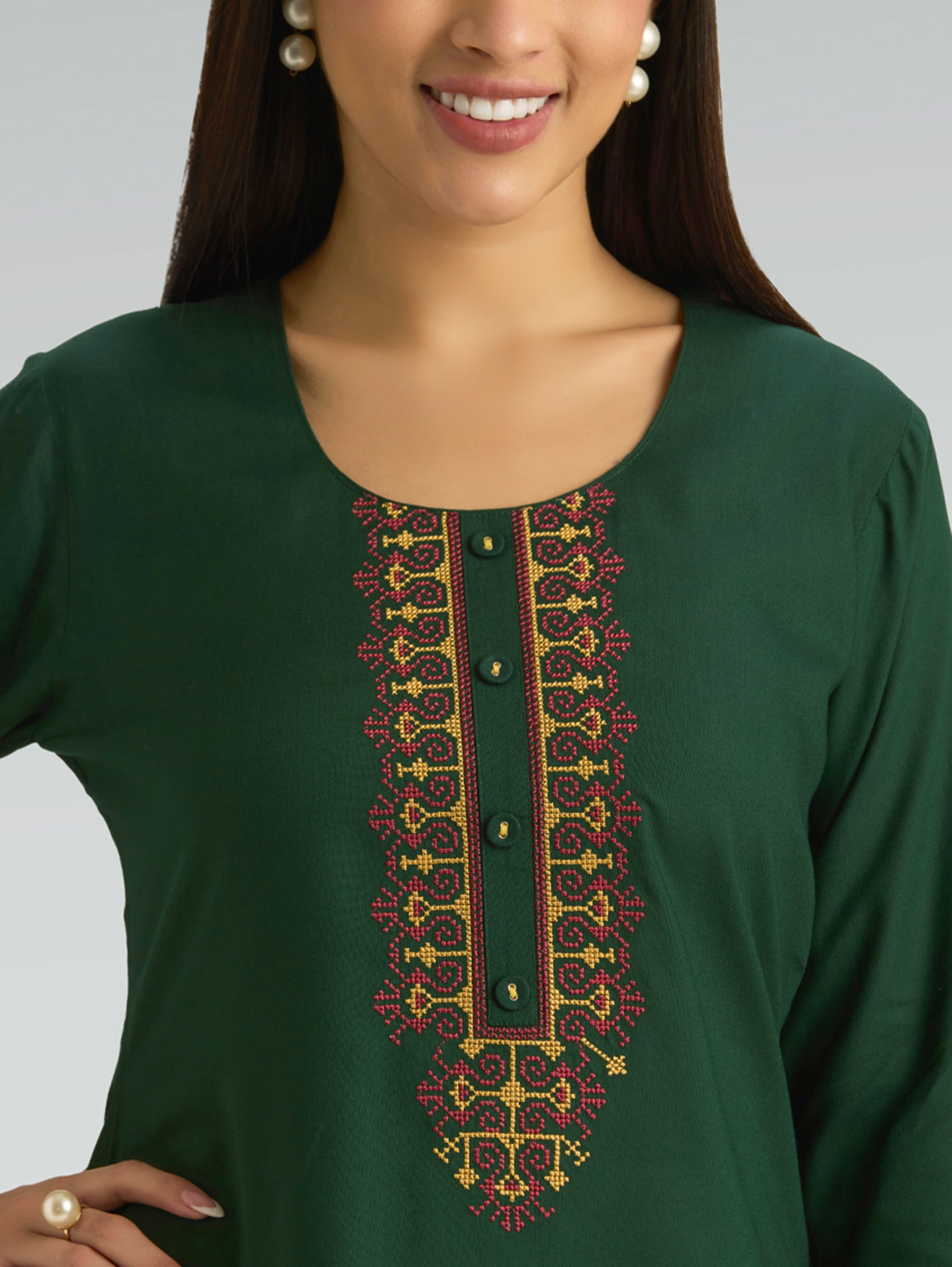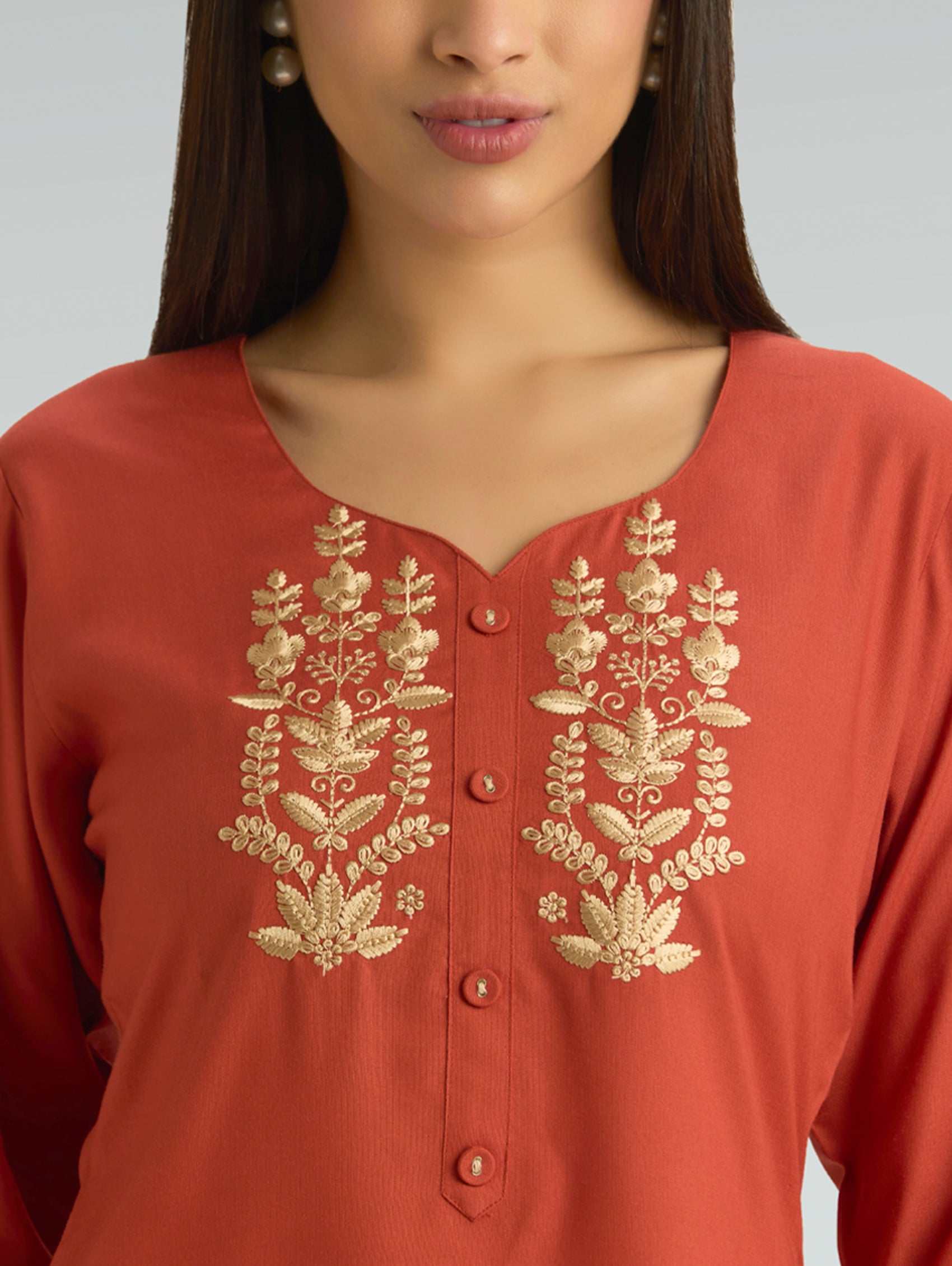 • Tunic with a keyhole round neckline, and three-fourth sleeves.
