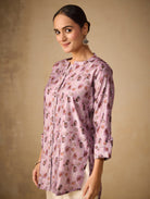 Pink Printed Pure Viscose Silk Short Kurti 4357