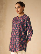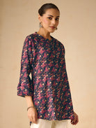 Introducing our latest arrival—a stunning short kurti crafted from pure viscose silk, adorned with an elegant print, a ban collar, and three-quarter sleeves. This finely designed kurta effortlessly blends sophistication with modern flair. Enhance your style collection with this essential piece today!