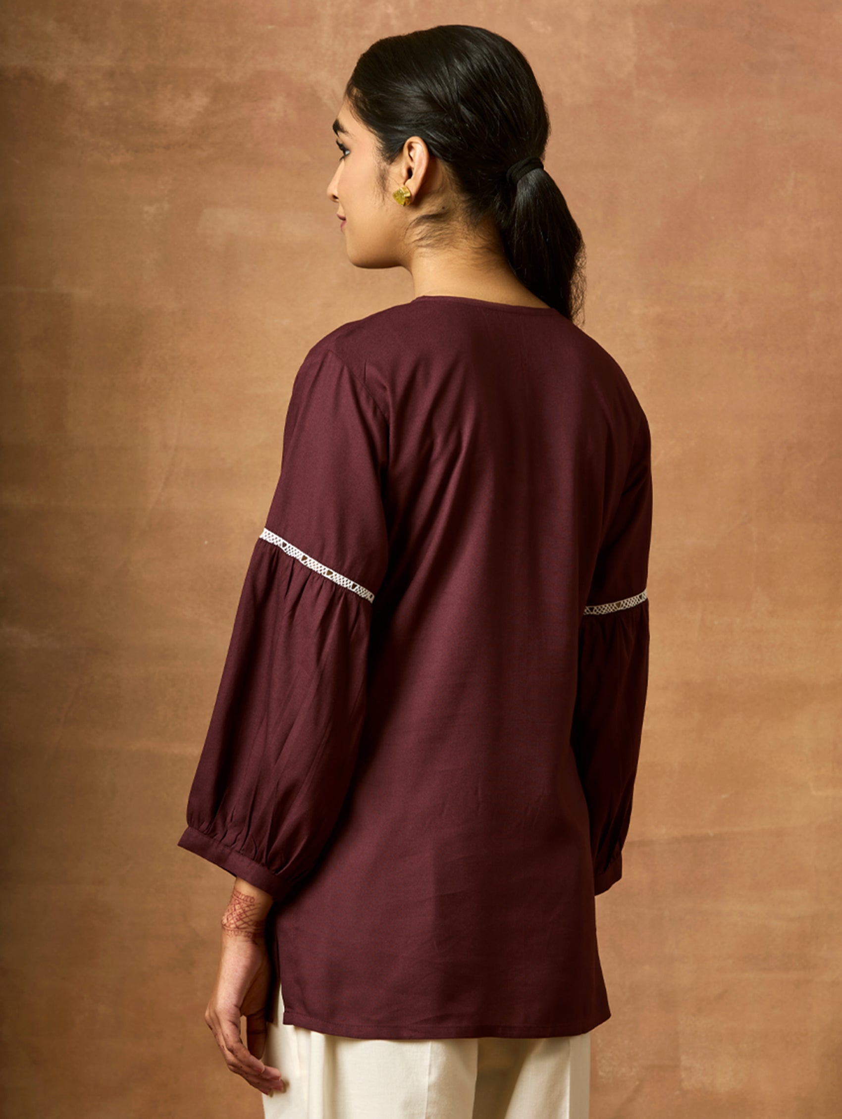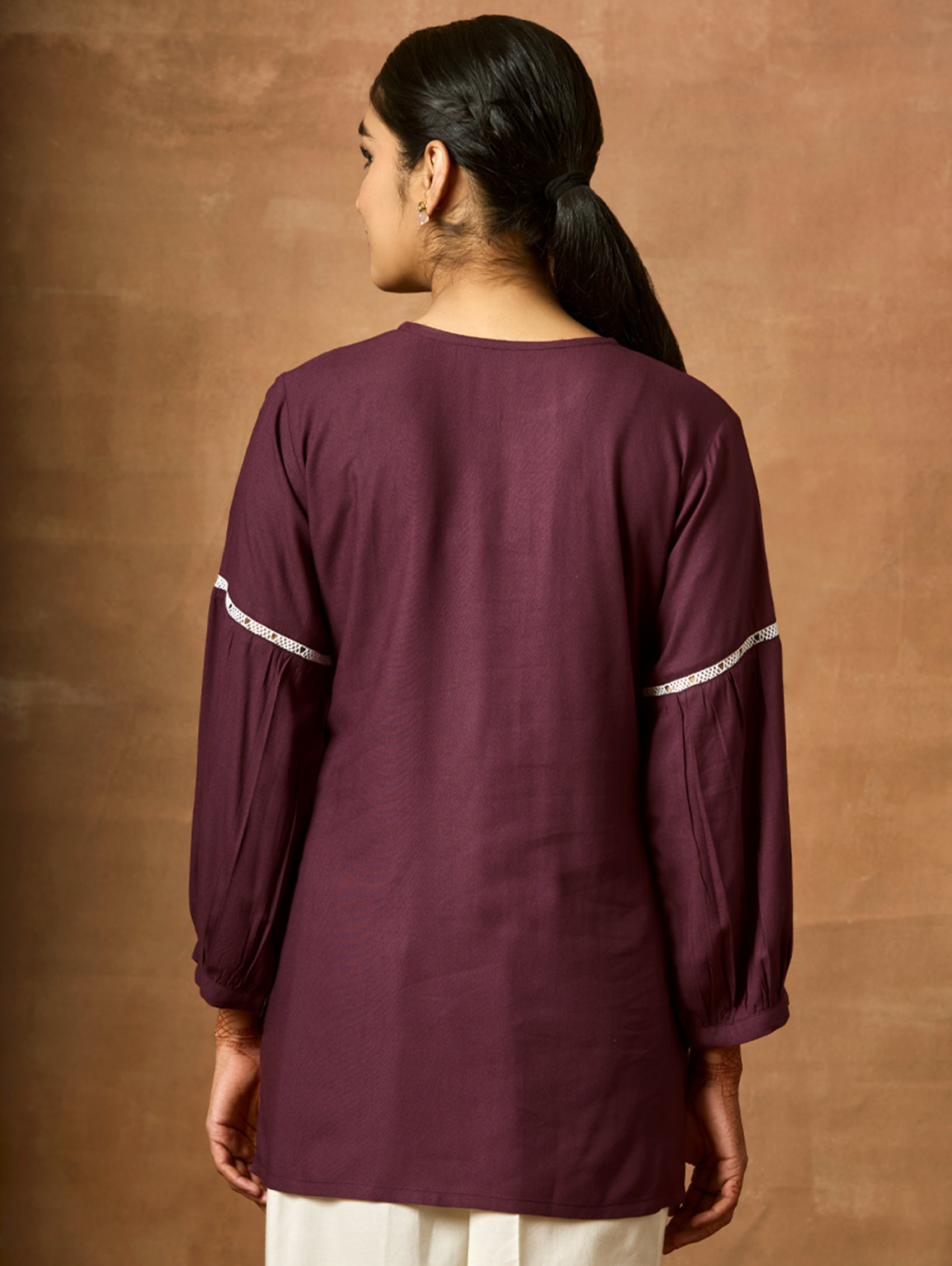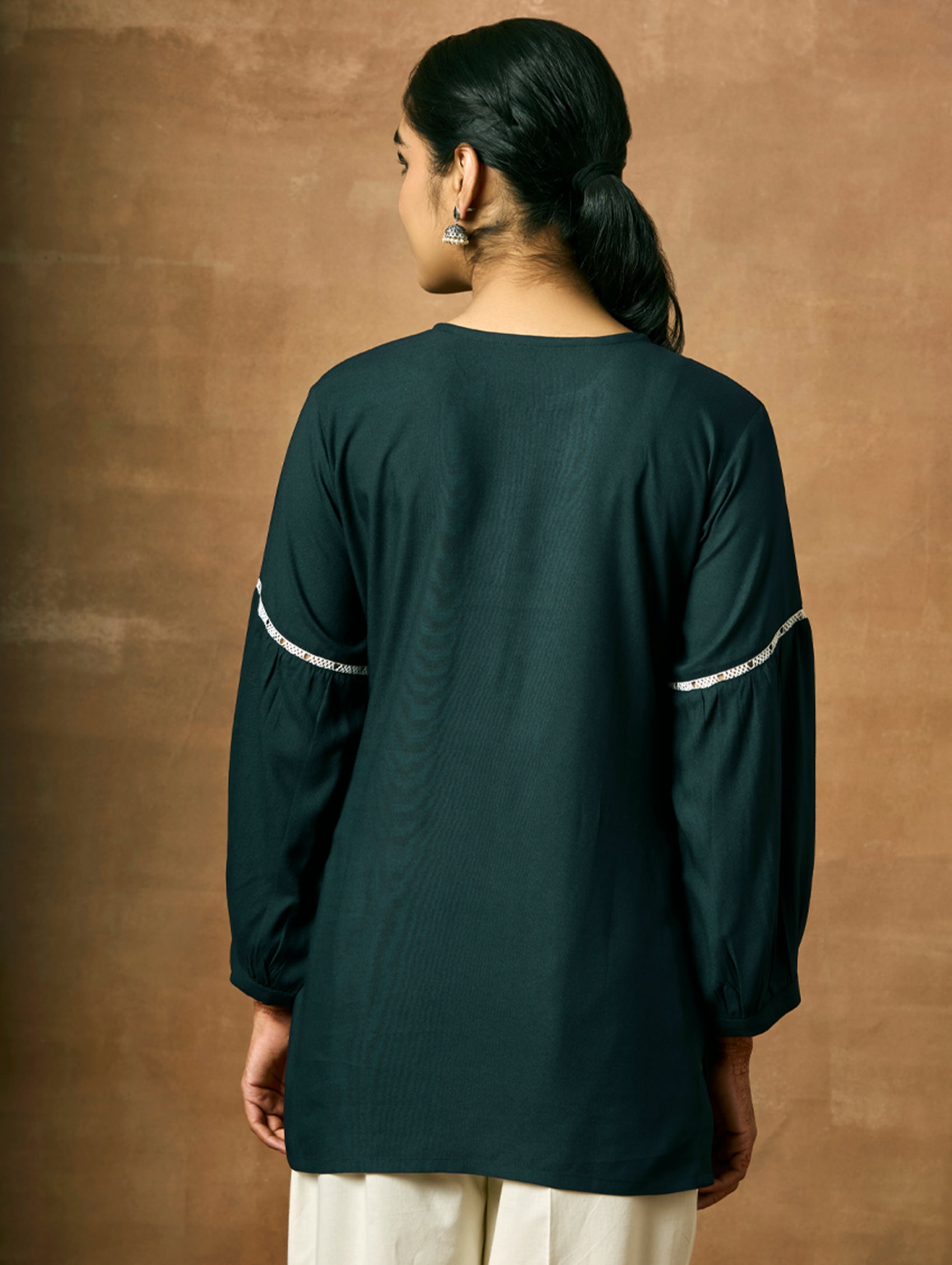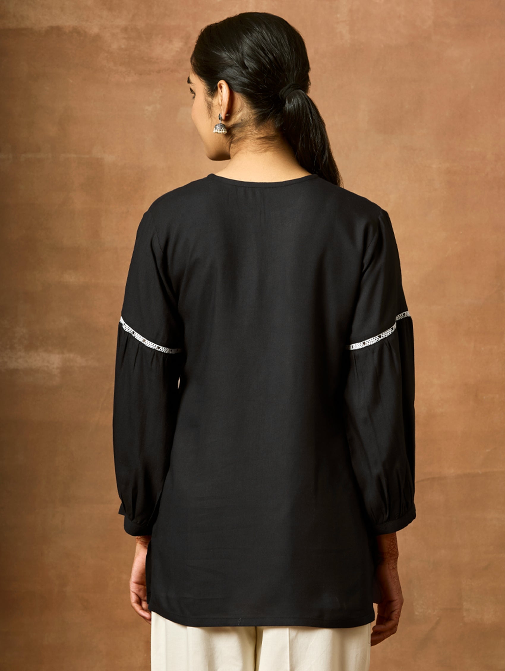 Introducing the newest member of our collection - an embroidered viscose rayon tunic adorned with a round neckline and three-quarter sleeves. Elevate your fashion game with this essential ensemble!