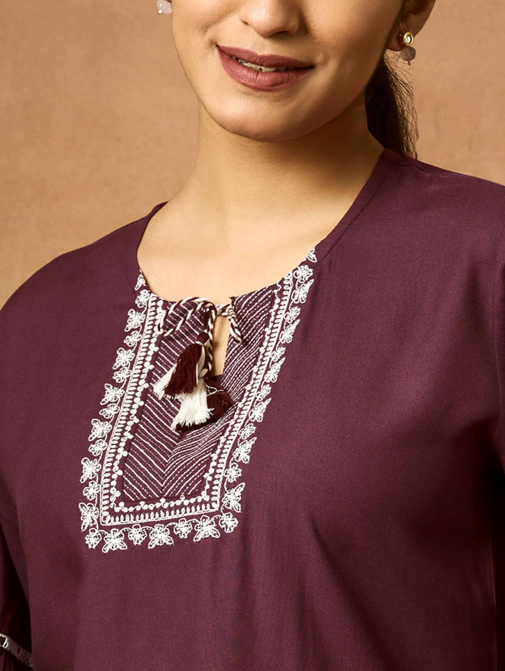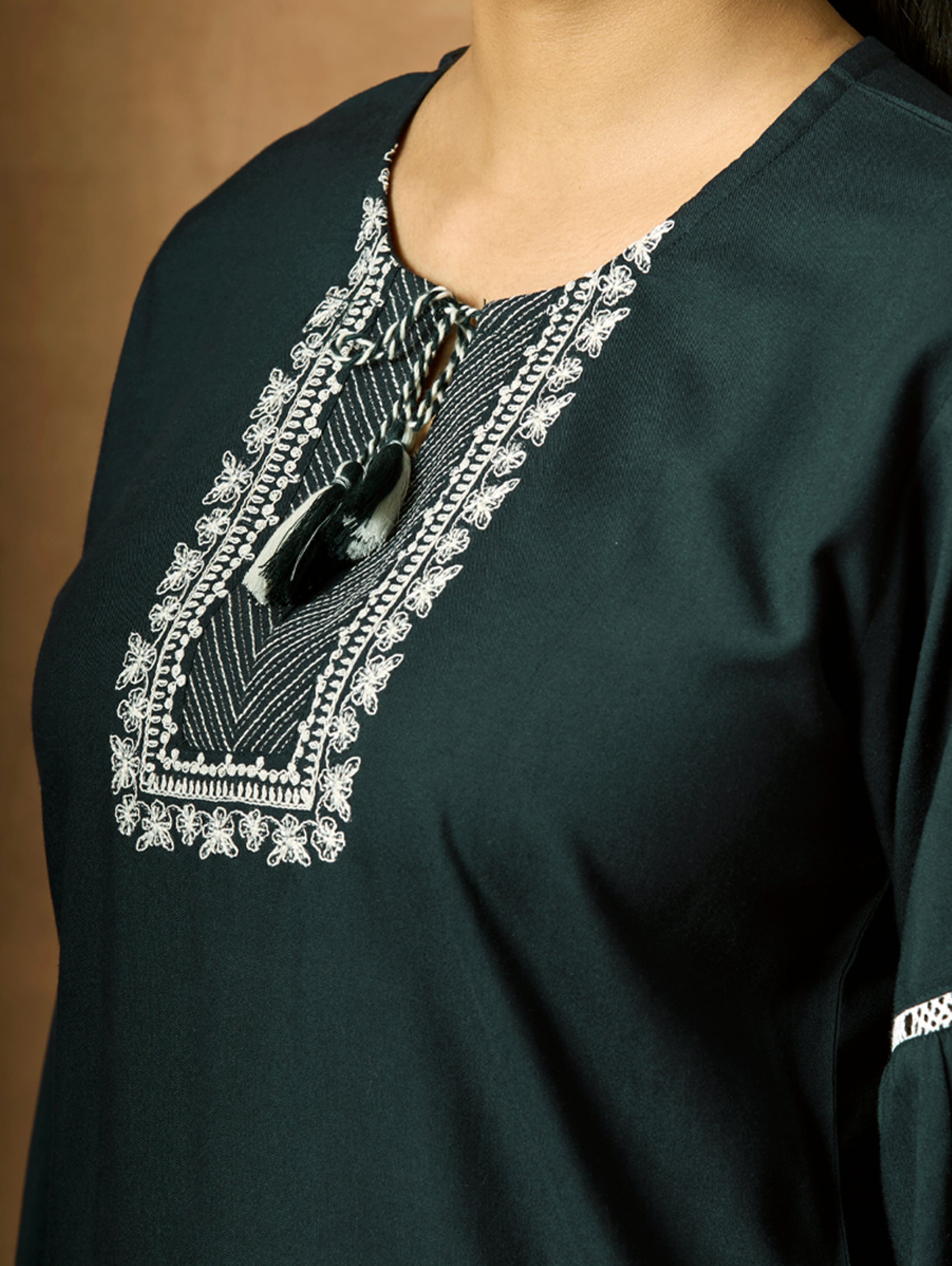 • Computerised thread embroidery on the tunic.