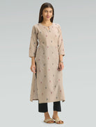 Beige Jamdani Motifs Pure Cotton Kurta