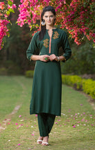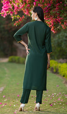 Let simplicity work for you wearing this kurta pants set by Women Plus. It comes featuring a ban collar, three fourth sleeves, and slits on either side. Crafted in the finest rayon, this kurta is perfect to keep you cool in the summers.