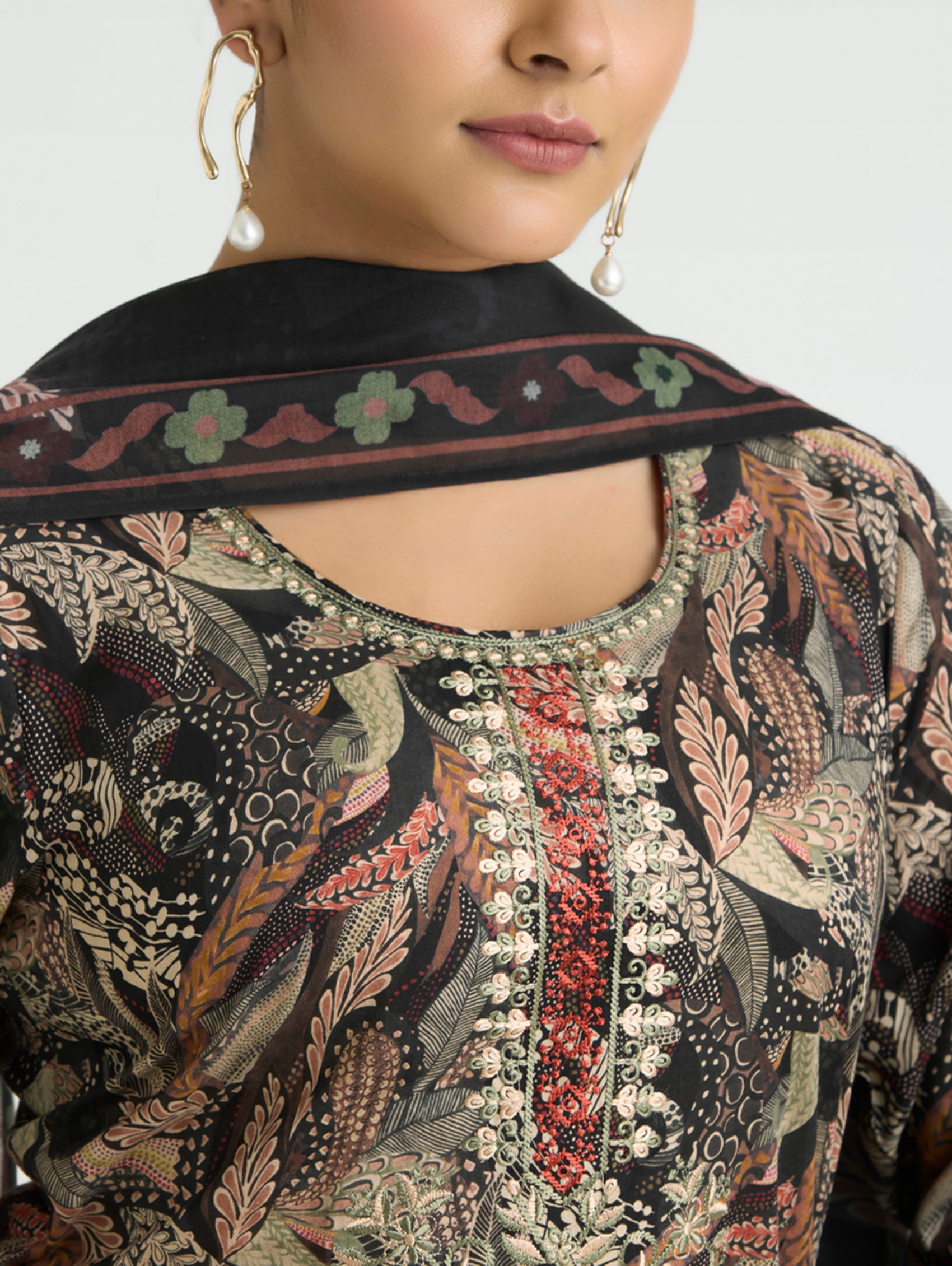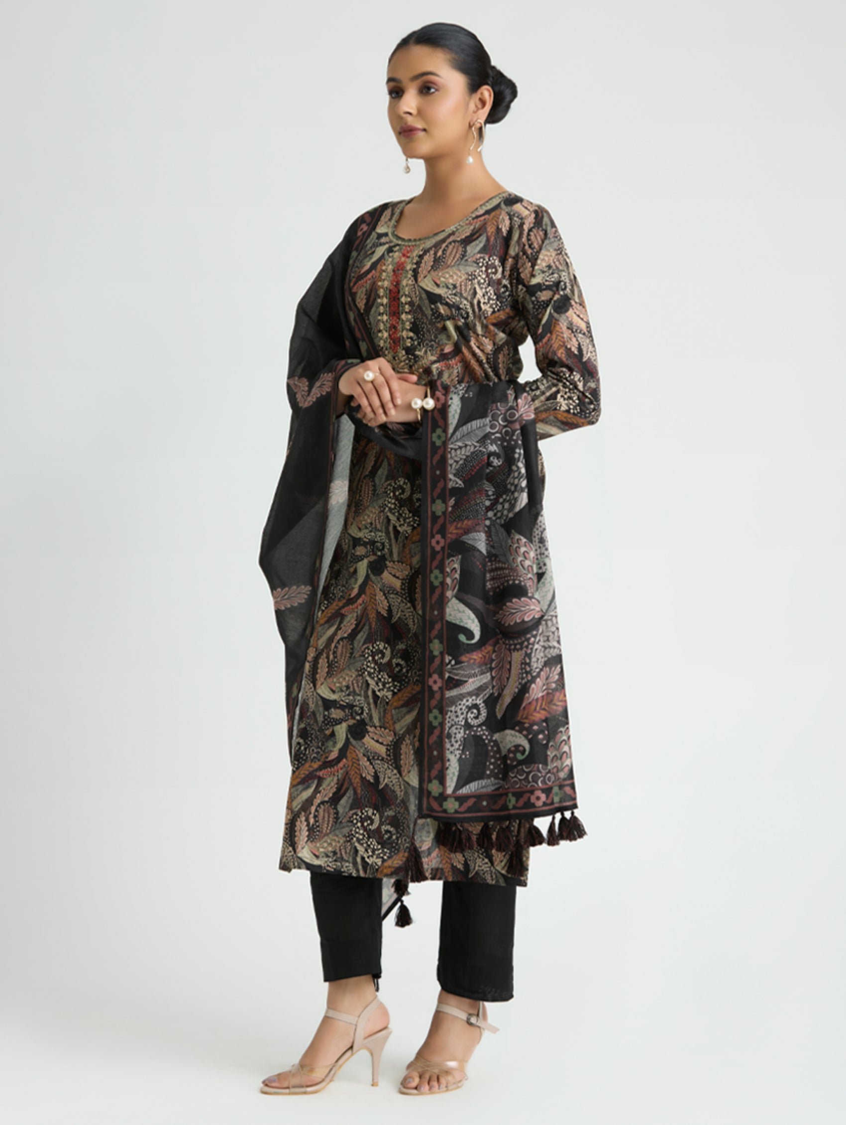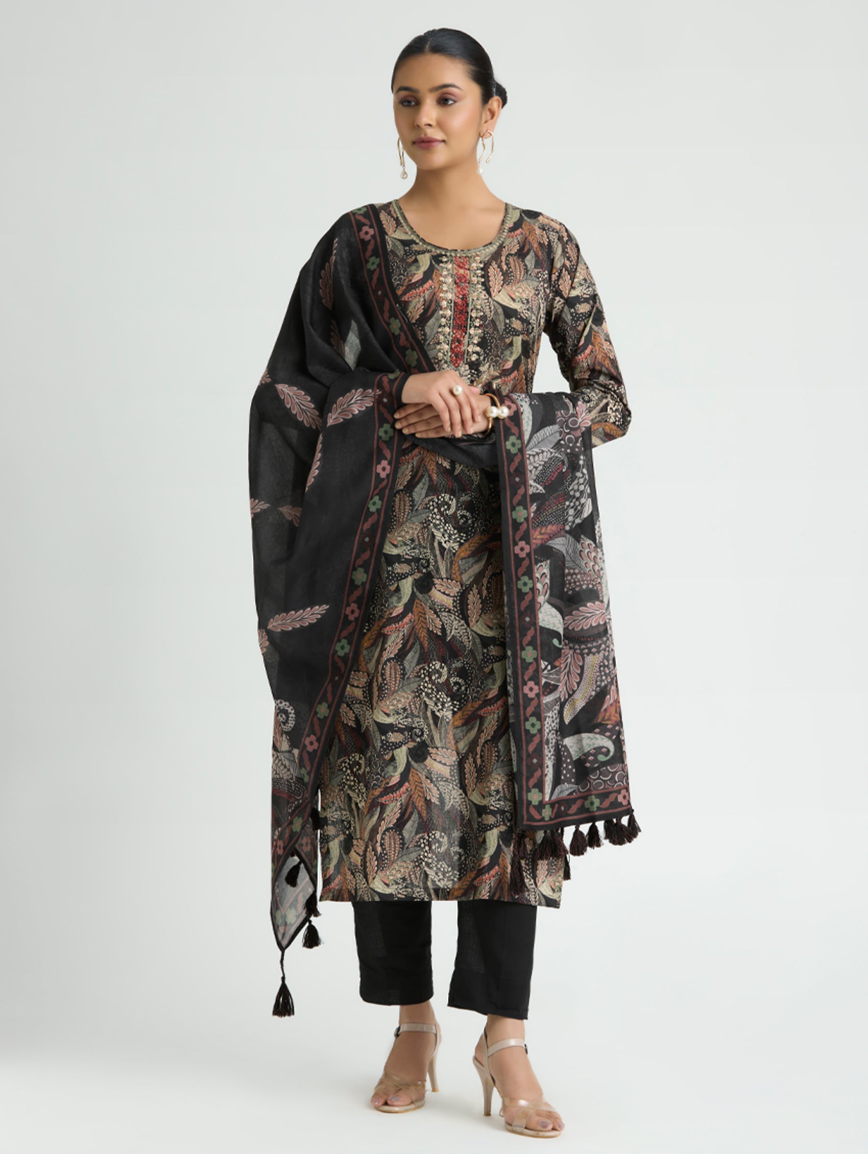 Indulge in the newest addition to our collection - a printed pure cotton suit set. This set radiates elegance and luxury, showcasing a well-fitted kurta intricately embellished with computerized thread embroidery, complemented by straight pants and a coordinating dupatta. Elevate your style with this essential ensemble!
