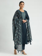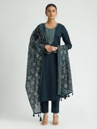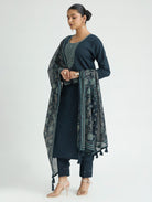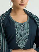 Dark Blue Embroidered Pure Cotton Suit Set with Dupatta