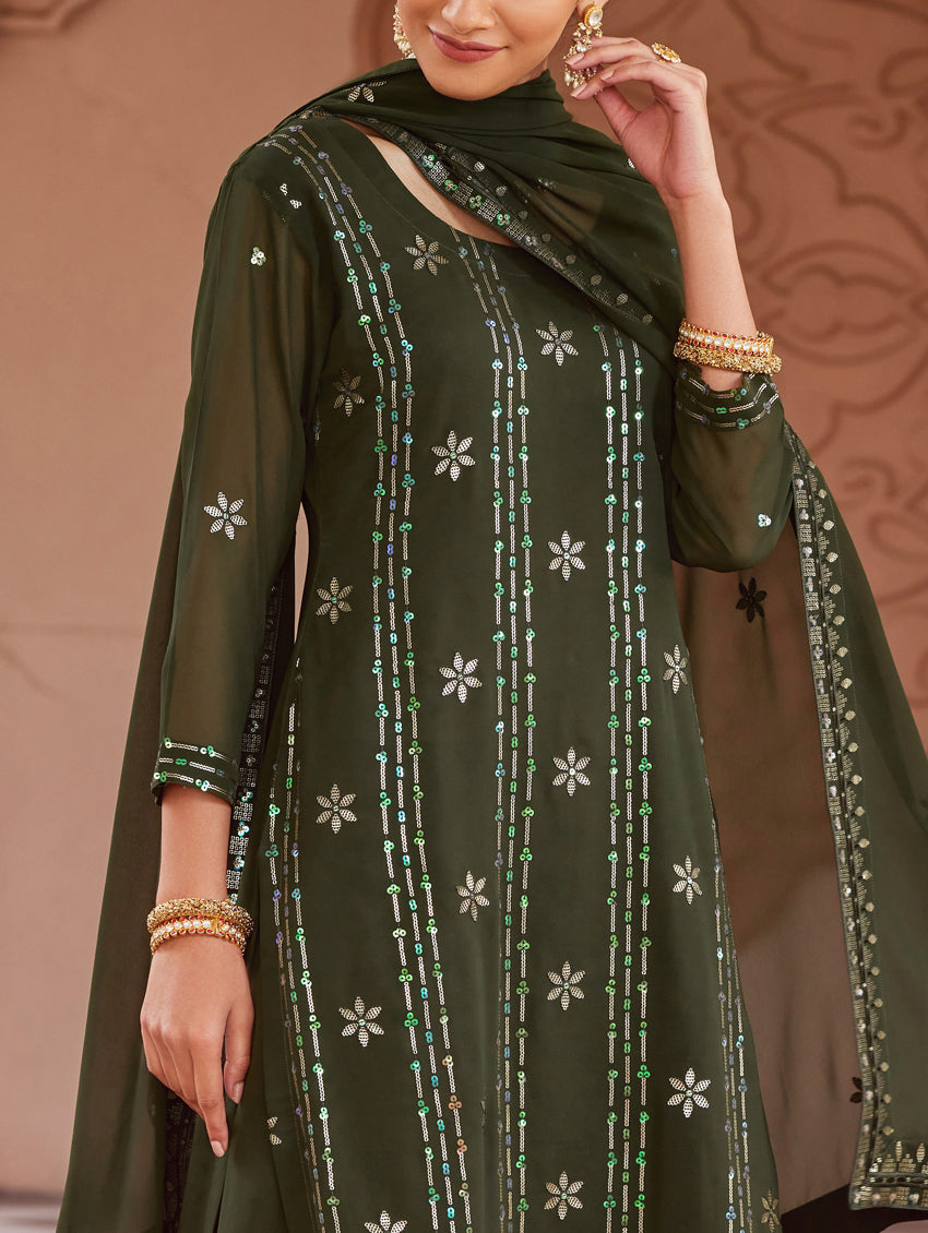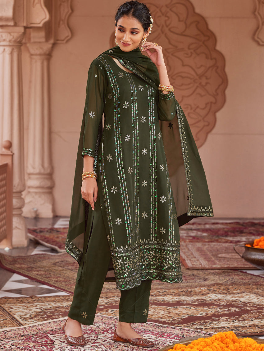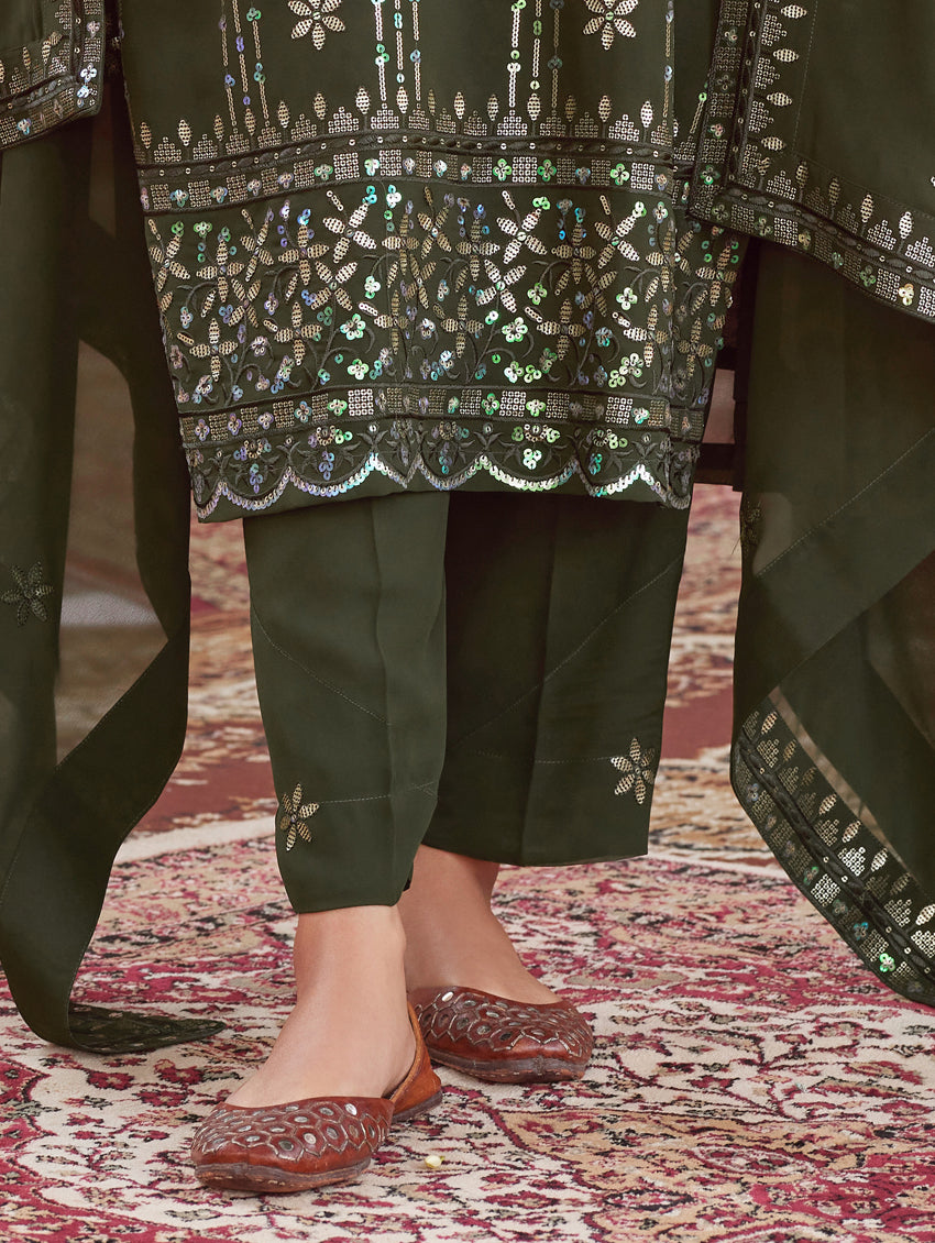 A straight-fit suit set from our latest festive collection. The set combines a kurta in net fabric with shantoon lining beneath, regular solid-coloured pants in silk fabric, and a dupatta in net fabric. Kurta comes with computerised thread embroidery along with sequence work.