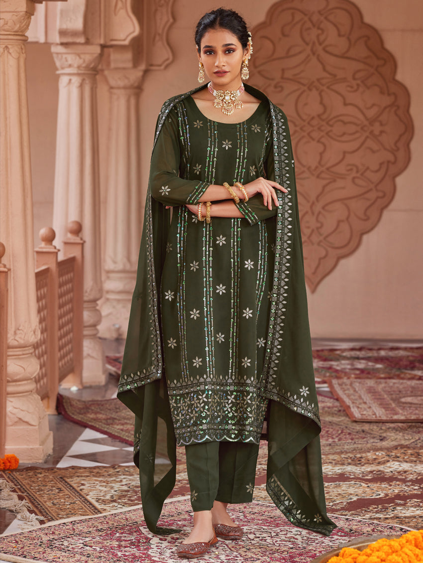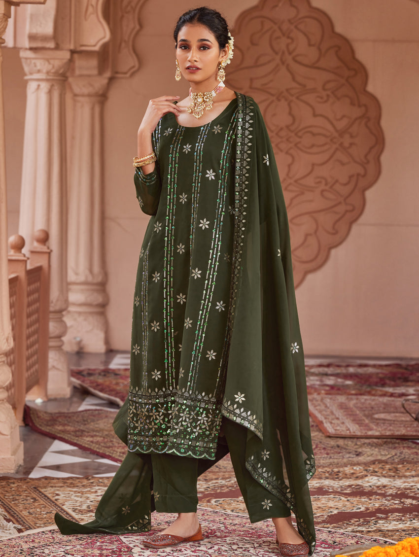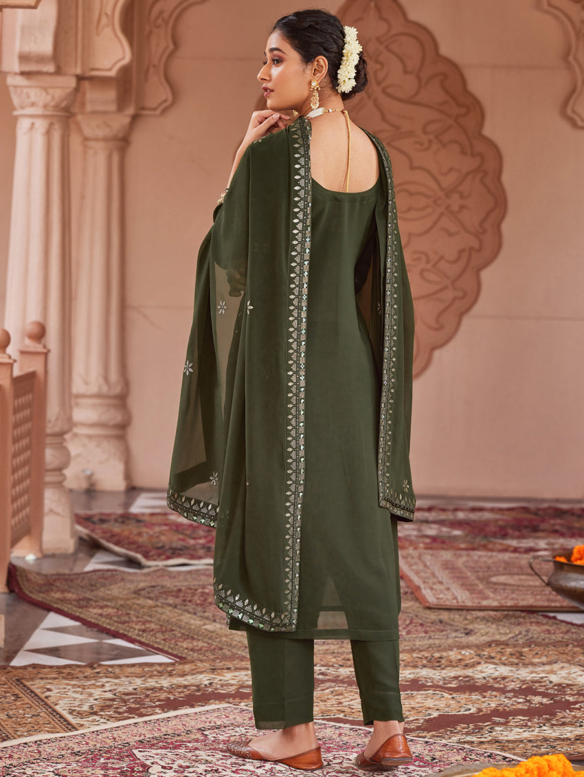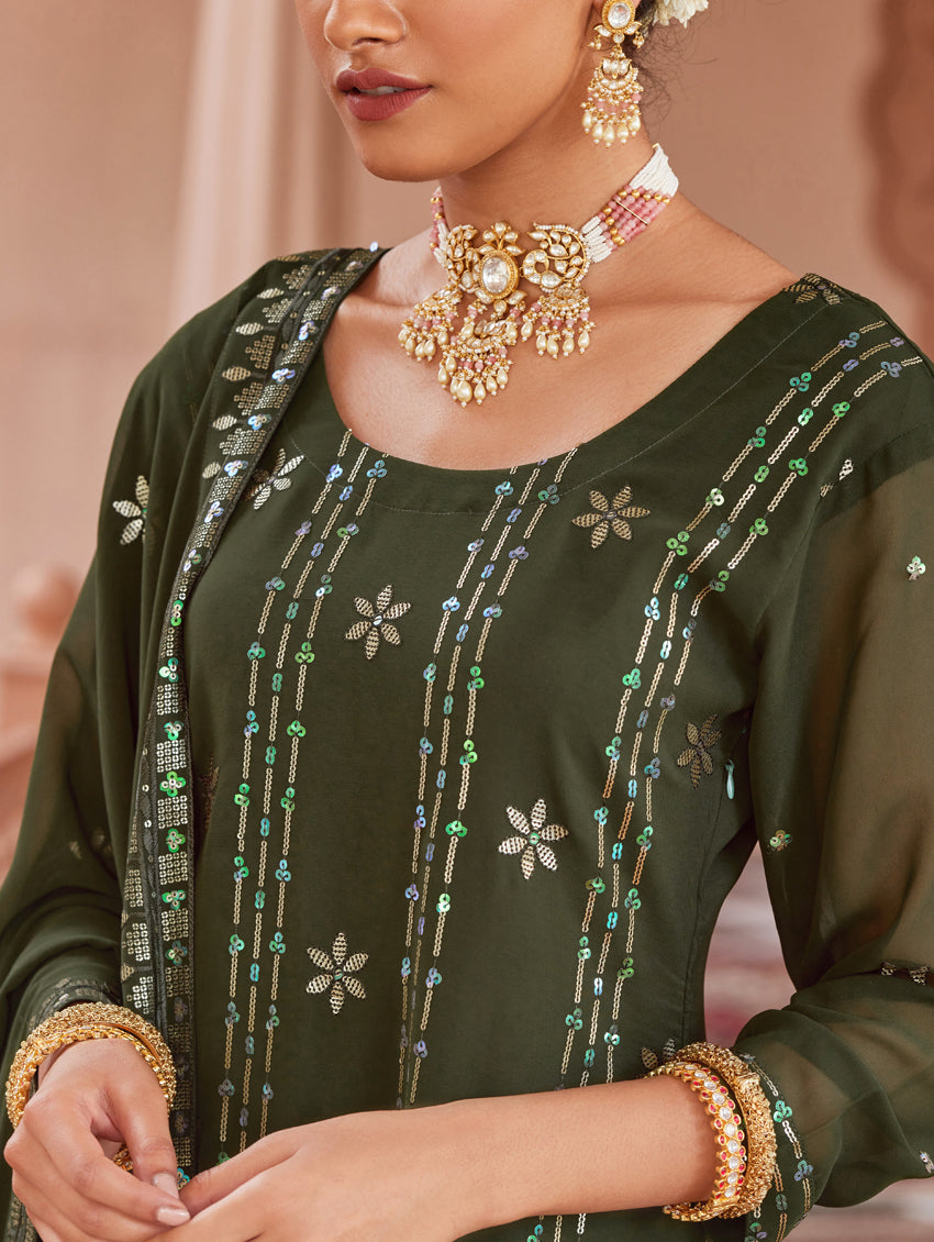 A straight-fit suit set from our latest festive collection. The set combines a kurta in net fabric with shantoon lining beneath, regular solid-coloured pants in silk fabric, and a dupatta in net fabric. Kurta comes with computerised thread embroidery along with sequence work.